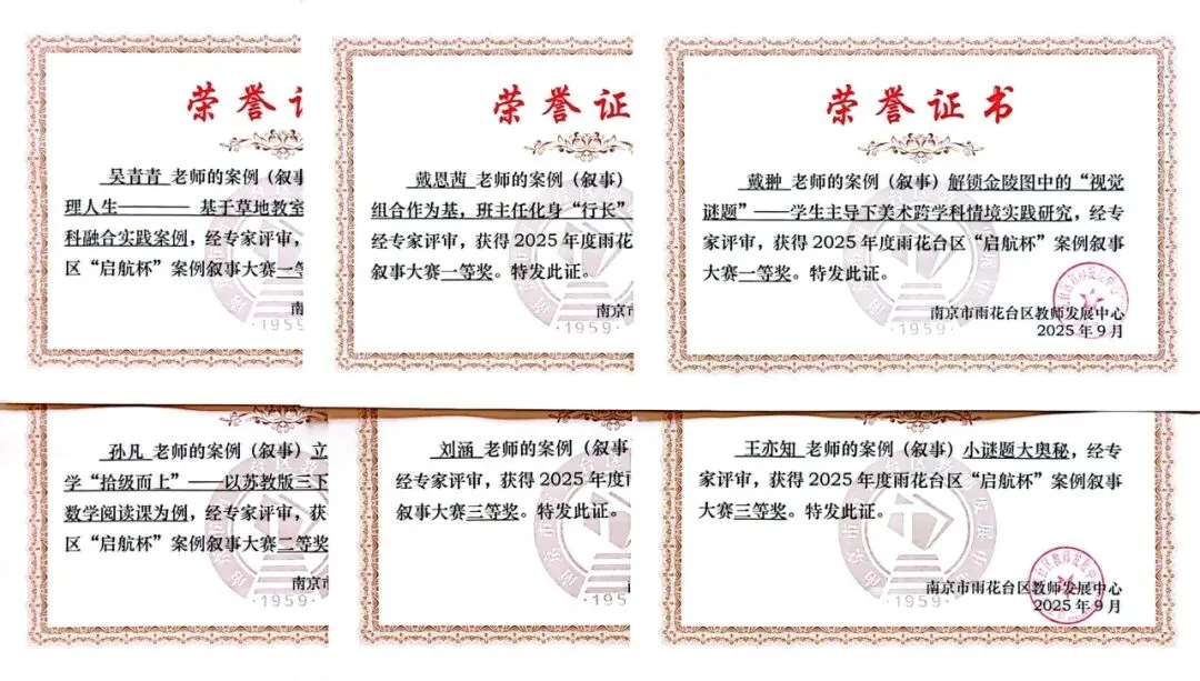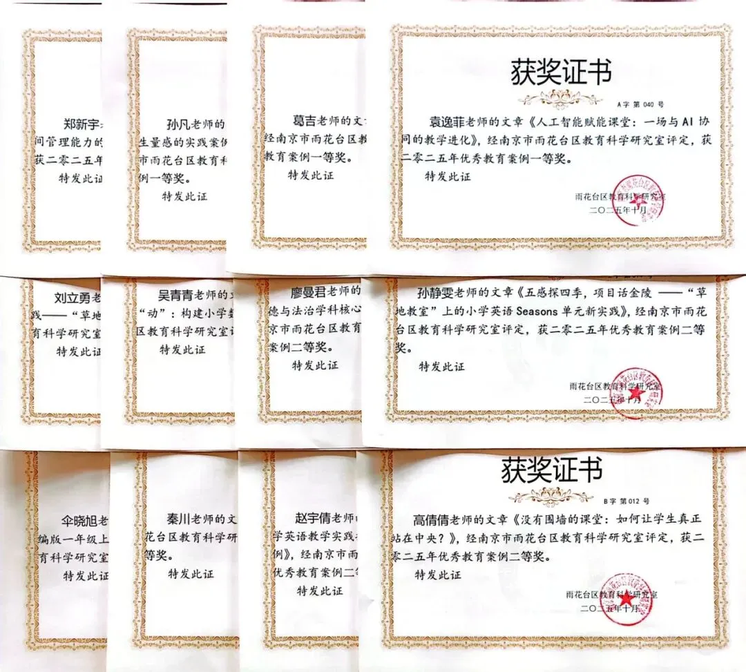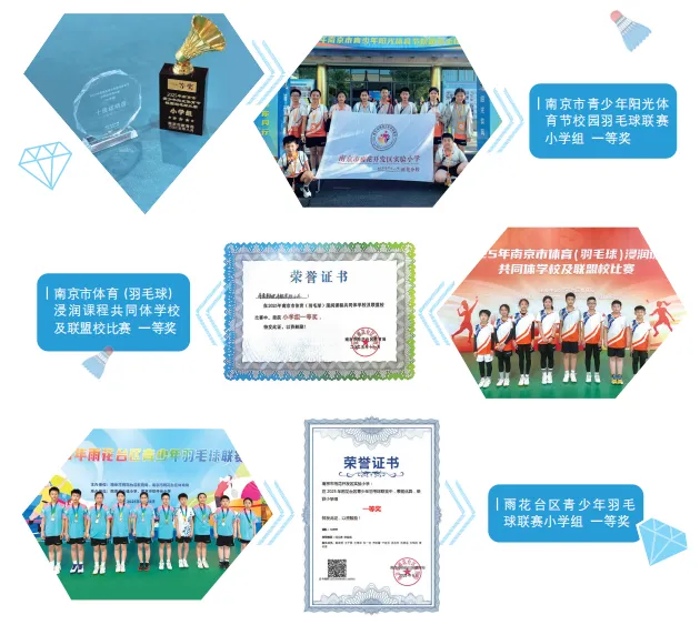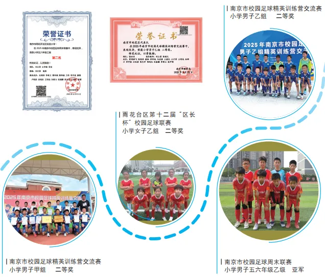 本年度,我校正式成立“小主人成长中心”,以“赋能自主成长,培育新时代好少年”为目标,注重提升小学生核心素养,着力培养自主自律、乐学乐创、全面发展的新时代少年。深入开展“小主人创行社”系列课程与多样实践活动,整合校内外资源、搭建多元成长平台,全面助力学生健康发展与个性成长。我校足球队方帅、陈泽涵等16名同学荣获2025年南京市校园足球周末联赛小学男子五六年级乙级亚军;李希俊、方宇辰等48名同学分别在2025年雨花台区第十二届“区长杯”校园足球联赛中获小学混合组季军,小学男子甲组、乙组亚军,其中,小学男子乙组晋级南京市“市长杯”校园足球联赛;羽毛球社团戴婧恬、王子豪、王健成、叶垚辰等10名同学荣获2025年南京市青少年阳光体育节校园羽毛球联赛小学组一等奖,雨花台区2025年第七届中小学阳光体育节校园羽毛球比赛小学组一等奖,南京市体育(羽毛球)浸润课程共同体学校及合作校邀请赛(雨花台区)小学组冠军。此外,跆拳道、美术、音乐、信息科技等社团在多项赛事中斩获佳绩。