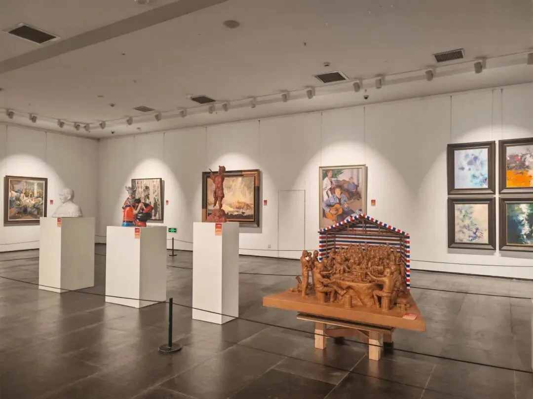 步入展厅,一幅幅作品宛若时空之窗,或以遒劲笔锋书写历代吟咏徐州诗篇,或以精细工笔再现古城风貌,或以淋漓水墨勾勒彭城山水。雕塑、油画、版画等多种艺术形式交织并置,艺术家们以精湛技艺,将文化记忆转化为视觉语言,引领观众在观展中感受彭城文韵与时代新风。