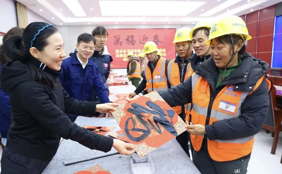 近日,一公司南京上元门房建项目部联合南京市永宁街道派出所、“大国书房”书法协会共同开展“送福进工地,平安迎新年”主题活动,以“平安护航+文化润心”双轮驱动,为一线产业工人送上专属新春关怀,彰显政企文共建合力。