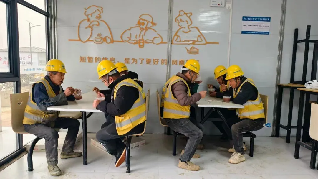 自项目进场以来,南京上元门房建项目部始终秉持“以人为本”的理念,将一线建设者的需求放在首位。项目部精心打造功能齐全、环境舒适的工人休息驿站,配备饮水设备、休息座椅等便民设施,为工友们提供工余休憩、交流学习的温馨空间;同时聚焦产业工人队伍建设,通过技能培训、安全宣讲、岗位练兵等多样化举措,助力产业工人提升专业素养与实操能力,着力构建有温度、有活力、有凝聚力的项目团队。