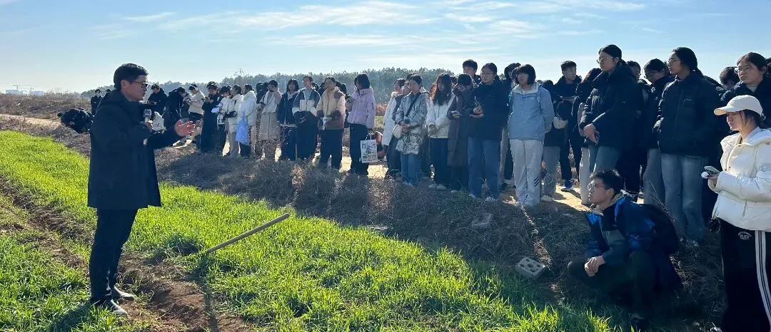 1月14日,300余名学生赴白马基地开展校外实地教学。在田间地头,在作物田间,专业教师系统讲解小麦、油菜等农艺特性,剖析生长规律;无人机植保演示则生动展现现代农业技术的精准高效。午后,师生一行走访神农智慧农业科学研究院,深入学习智慧农业的系统架构与装备创新。这场“传统农艺+现代科技”的深度体验,让学生真切感受到农业生产的艰辛与科技变革的力量,进一步明确了自身在种业振兴与农业现代化进程中的责任。