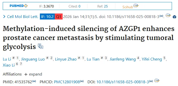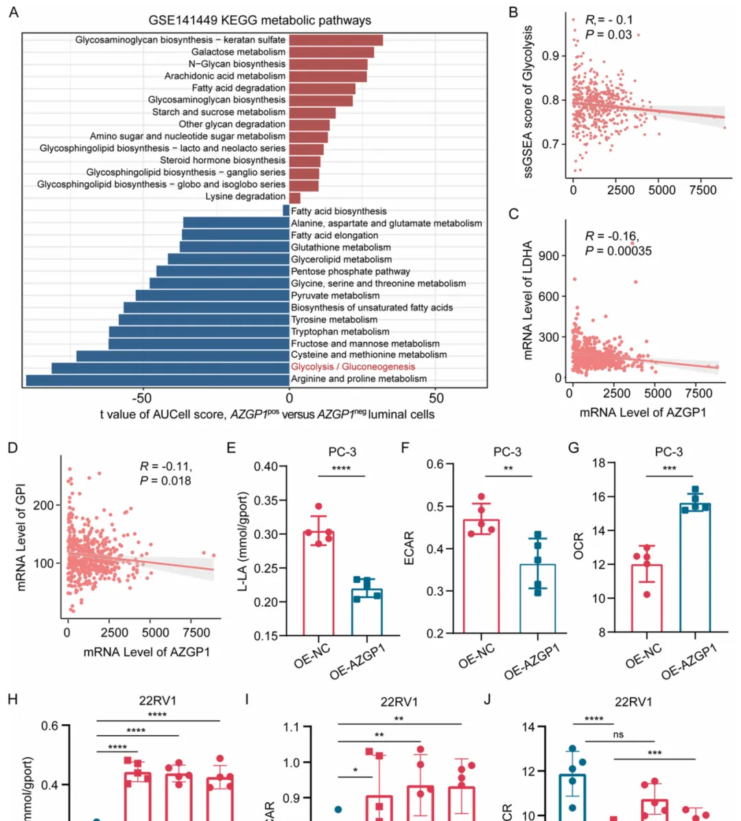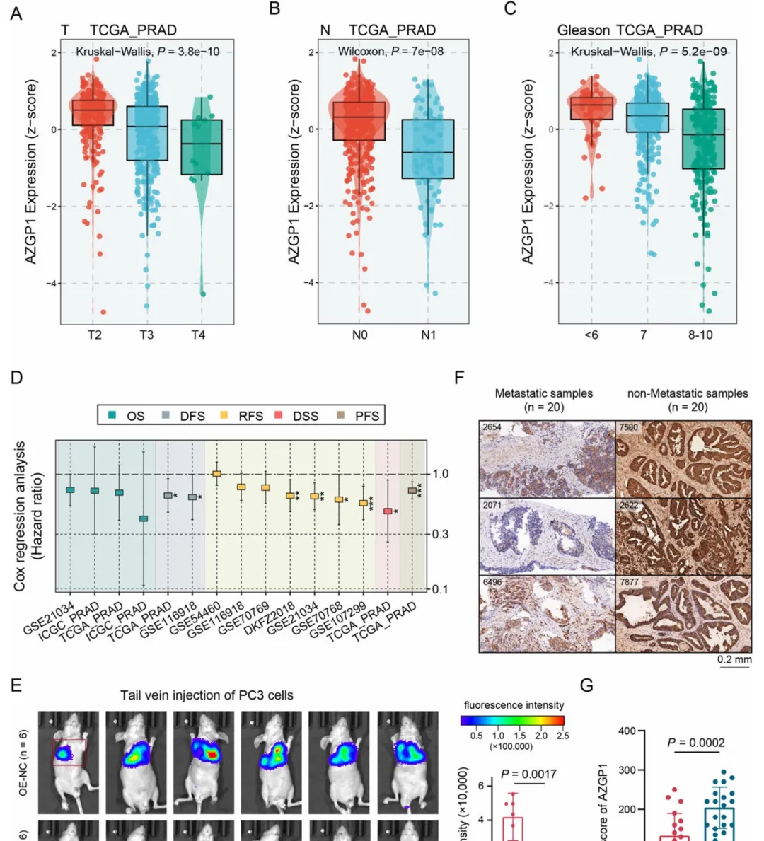 AZGP1 低表达还与患者无病、无复发及无进展生存期缩短密切相关,体内实验证实过表达 AZGP1 可有效抑制前列腺癌细胞的肺、骨转移能力。