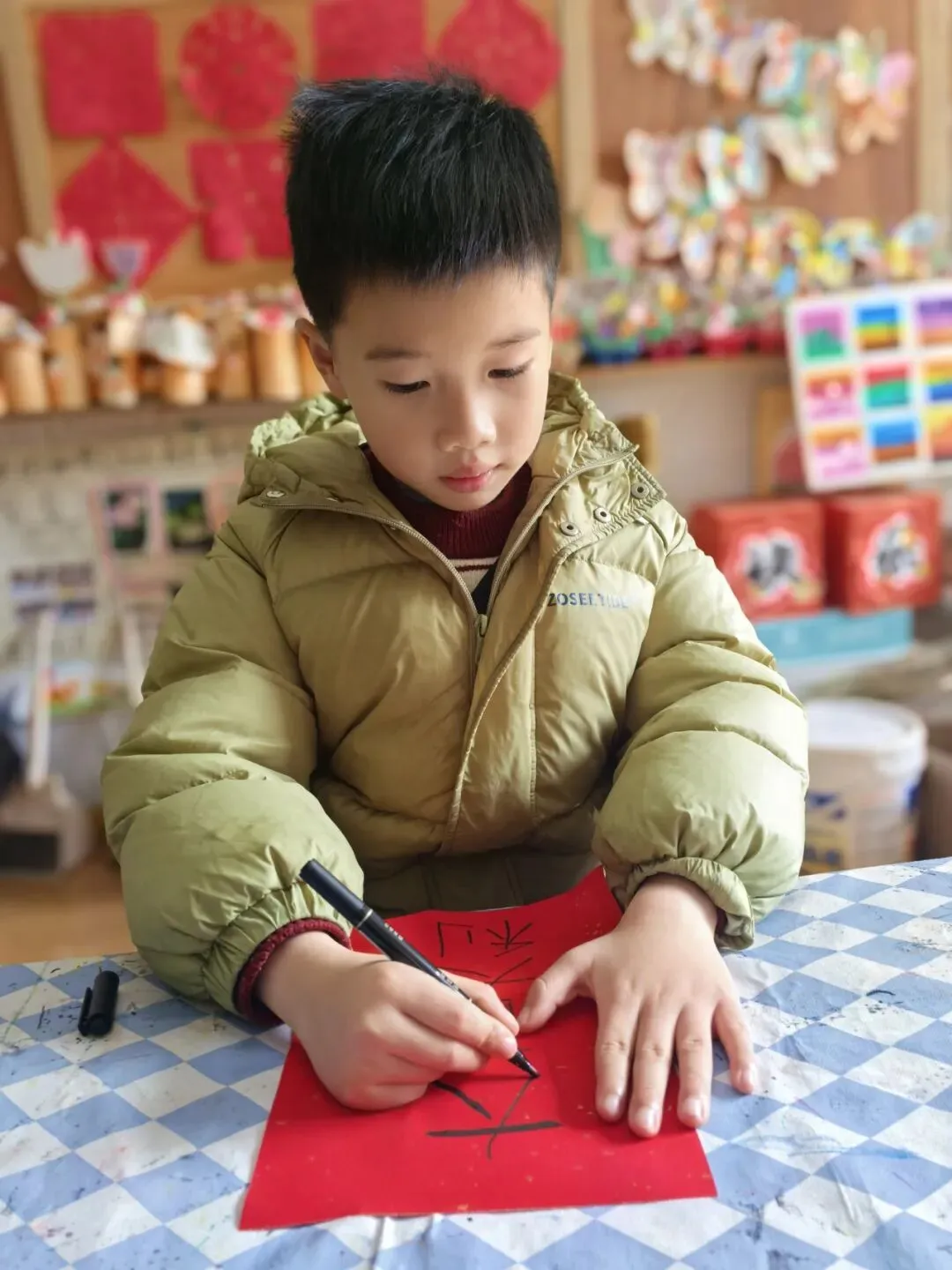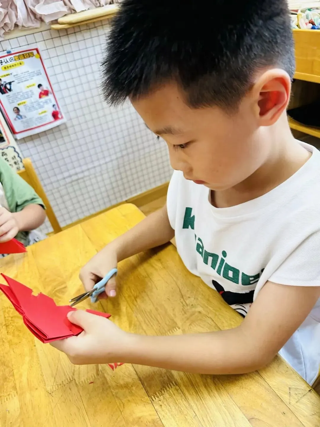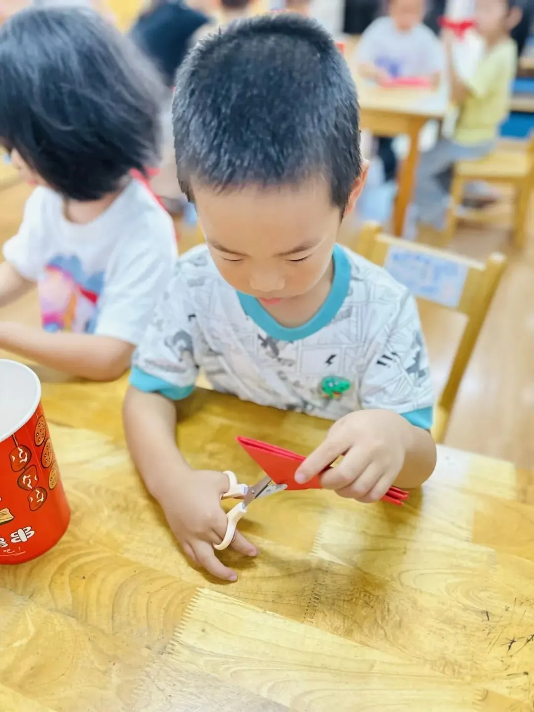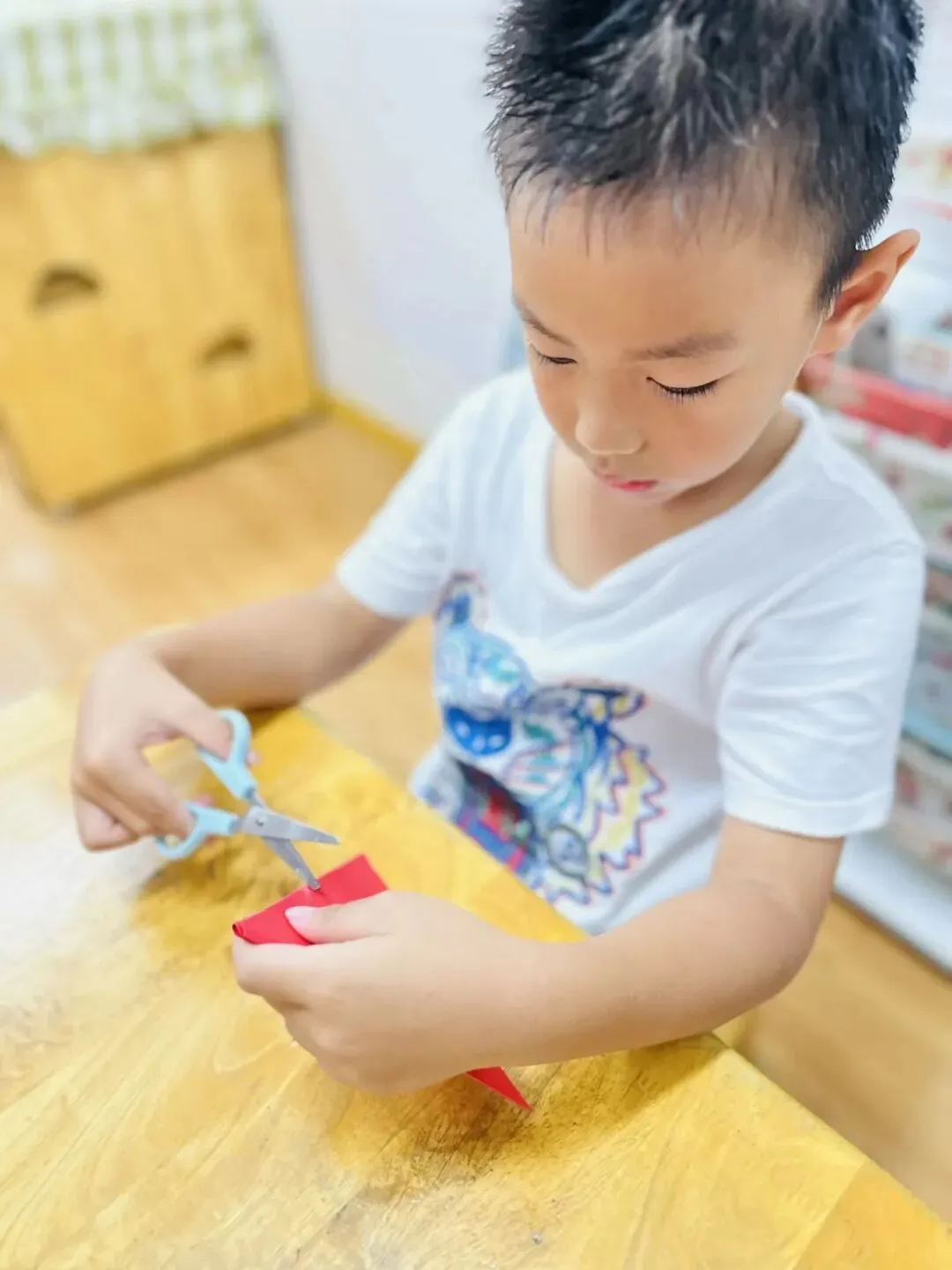 剪窗花是中国娃专属的年味浪漫,也是刻在骨子里的传统文化印记。结合“我是中国娃”主题,红纸折叠,彩剪翻飞,小小巧手剪出吉祥纹样,贴在窗棂添年味。在折剪之间,我们感受传统之美,传承中华匠心,做爱祖国、爱传统的中国娃,让非遗童趣在指尖绽放。