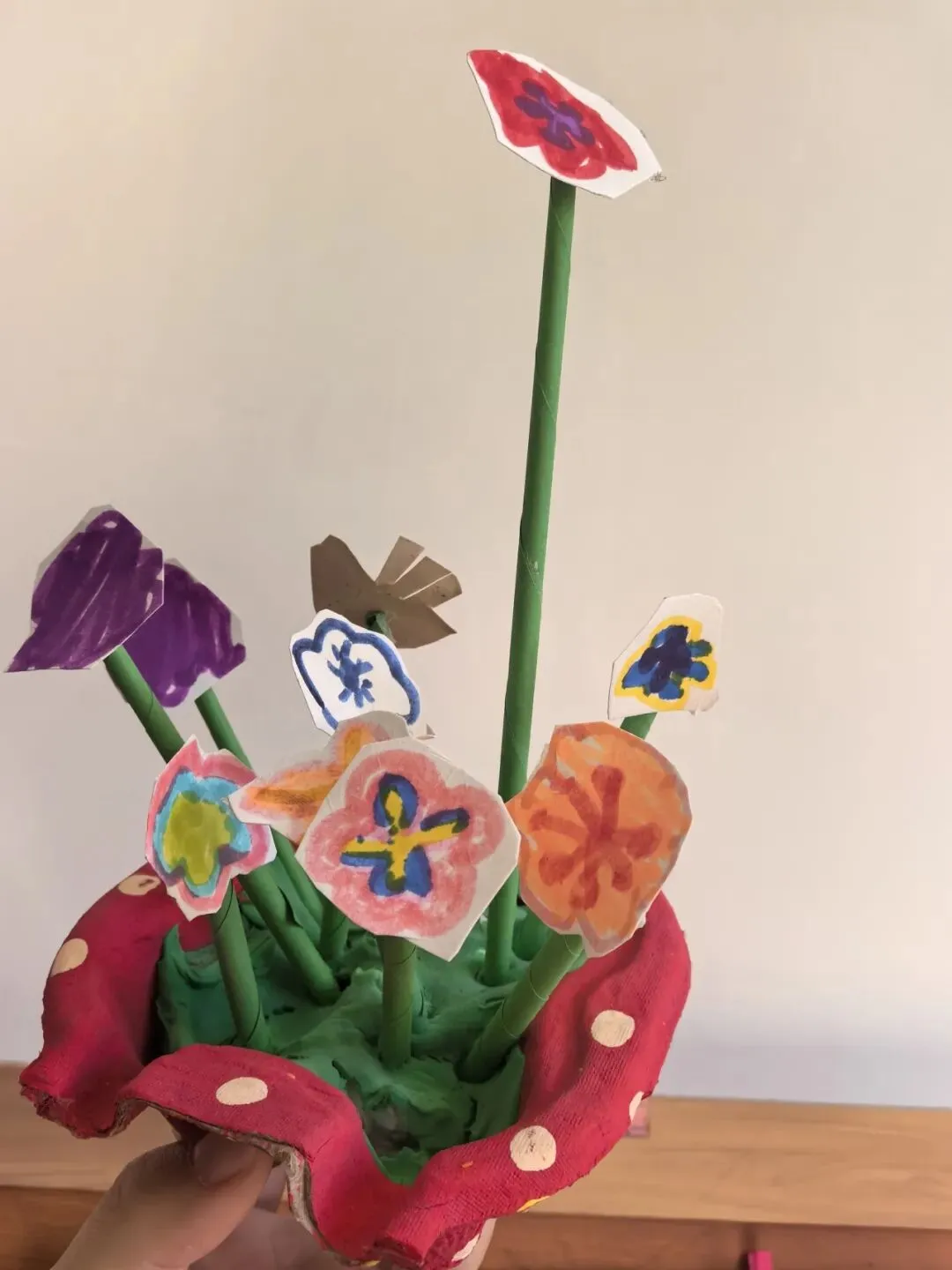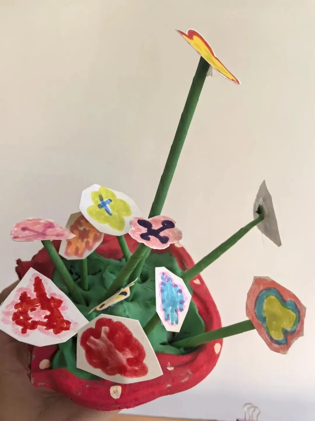 金秋送爽,丹桂飘香,在祖国妈妈生日来临之际,孩子们巧用奶茶托、彩纸等材料,亲手制作创意小花盆,插上缤纷纸花,用稚嫩的双手和真挚的心意,为祖国妈妈送上最美好的生日祝福。在老师的指导下,孩子们化身小小手工家,拿起废旧奶茶托,用彩笔、贴纸精心装饰,将普通的奶茶托变成了独一无二的小花盆,每一朵都承载着孩子们对祖国的祝福。
