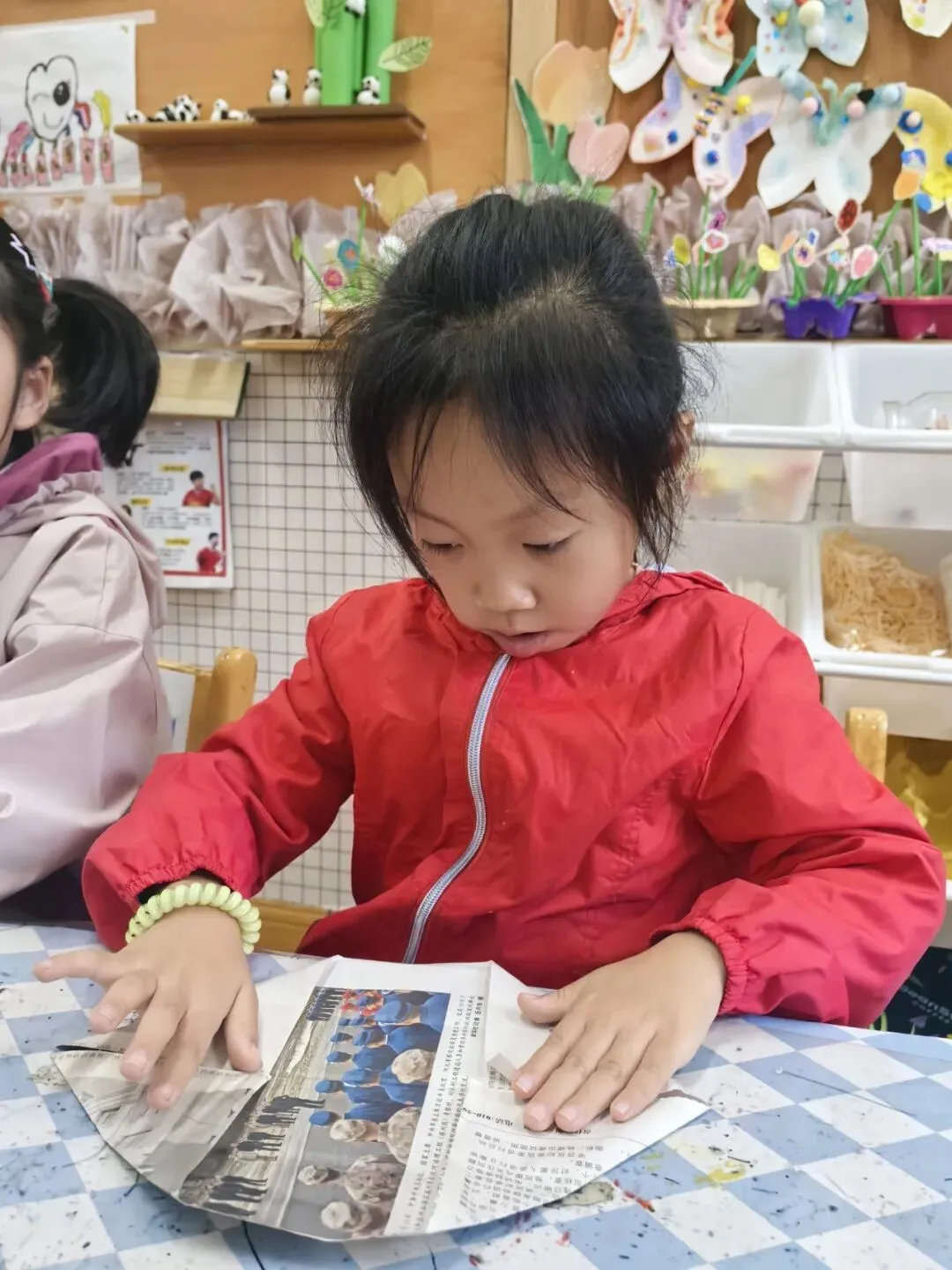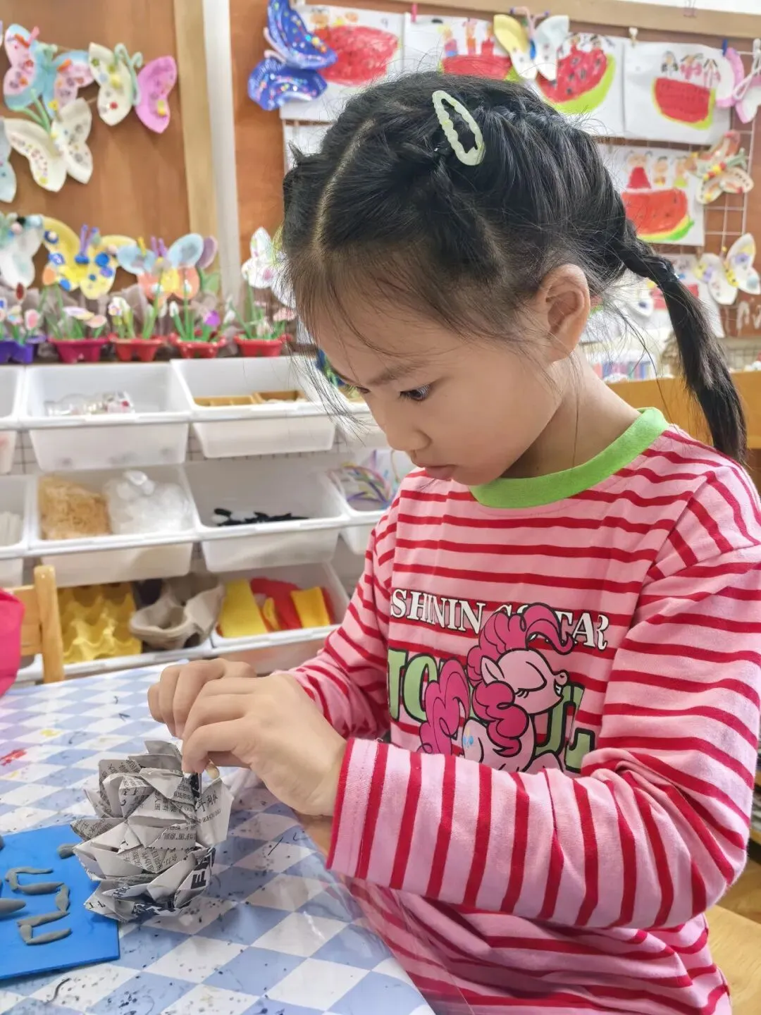 活动中,孩子们循着“折叠塑形——毛根拼接——卷边修饰”的步骤,将普通报纸变成了灵动的荷花。过程中,大家专注掌握折叠力度、毛根固定技巧与卷边弧度,不仅锻炼了手部精细动作与空间创造力,更在变废为宝的实践中感受手工乐趣。孩子们在动手探索中体验创作成就感,也培养了对生活中常见材料的创意运用能力。