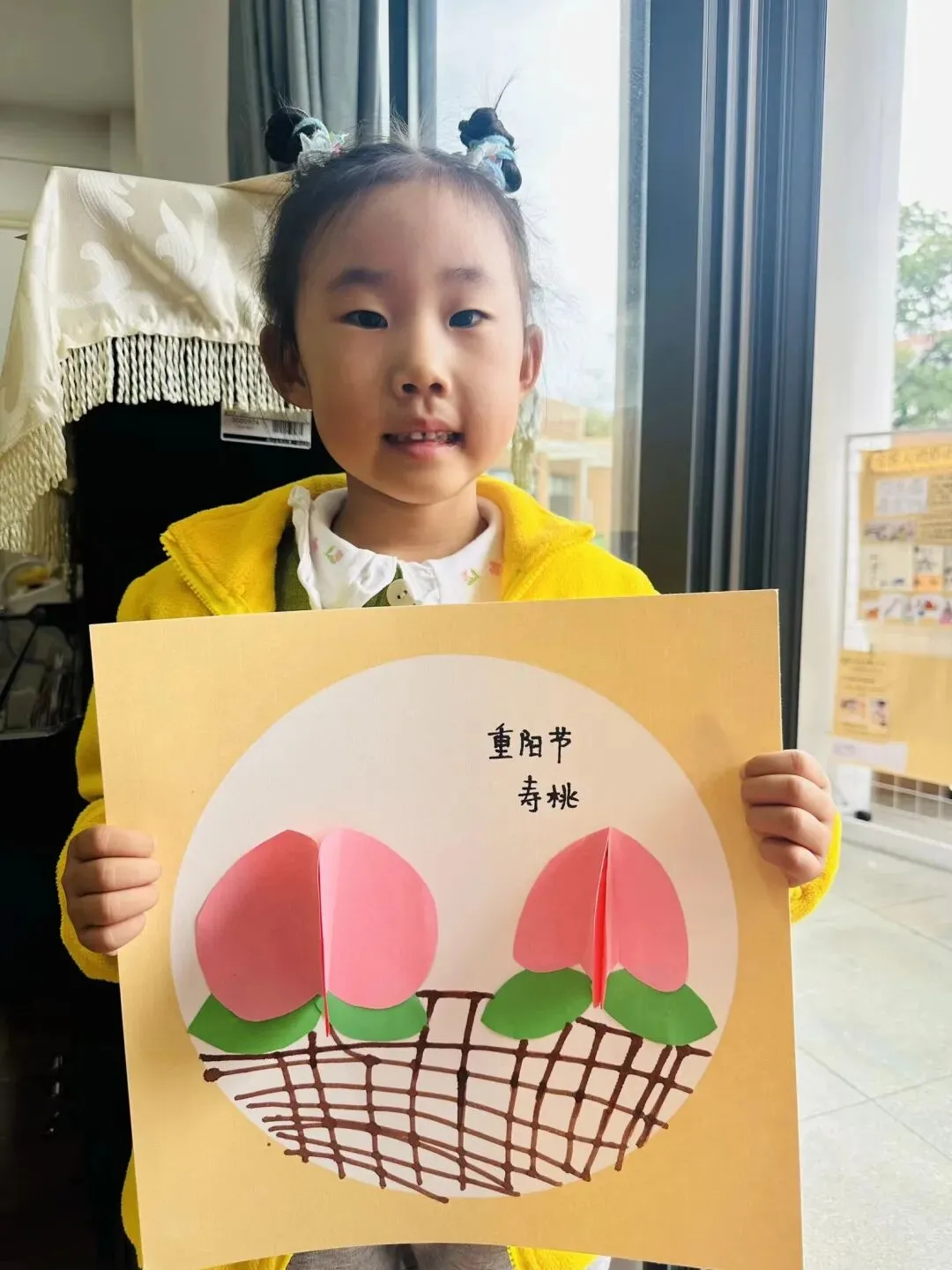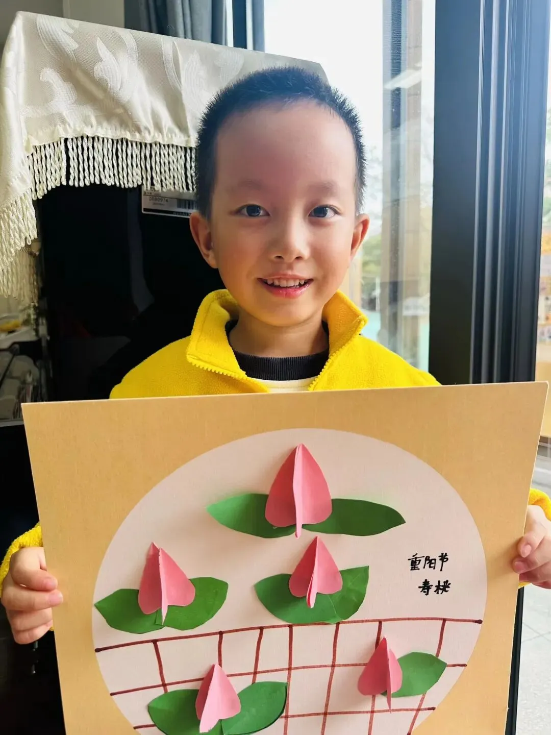 岁岁重阳,今又重阳。小朋友们用巧手折剪彩纸,将可爱的寿桃细细剪贴好。一笔一画藏着童真,一折一剪皆是心意,把对长辈的美好祝福,揉进了每一幅精巧的手作里。
