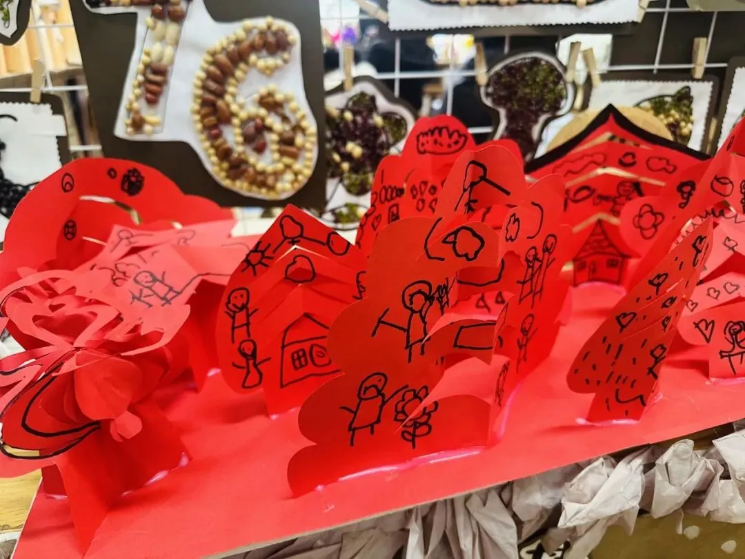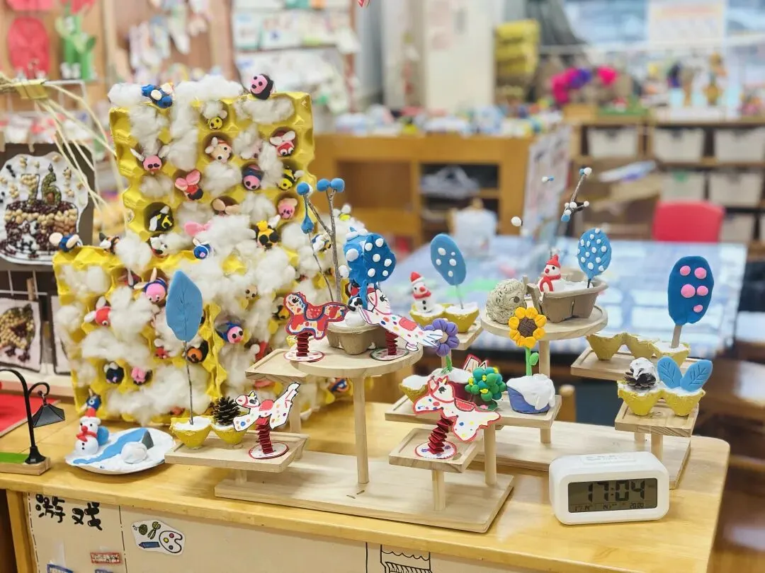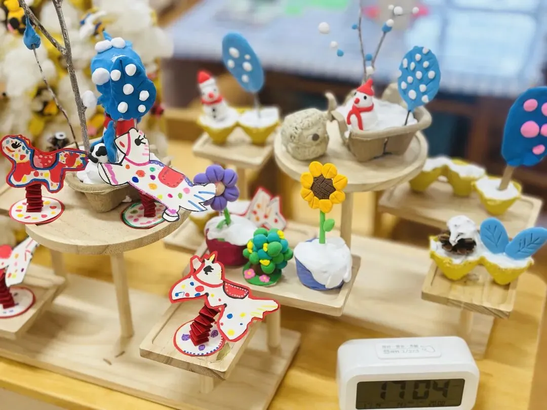 孩子们充分发挥想象力与动手能力,利用黏土、雪糕棍、鸡蛋托等废旧材料创意制作冬日小树,搭配手绘小马、红纸弹簧,将冬日元素与马年新年氛围巧妙融合。过程中,孩子们学会了收集、利用废旧材料,在动手创作中感受合作的乐趣,也在沉浸式体验中感知冬季节气与新年的美好,进一步激发了对传统节日的喜爱与对生活的探索欲。