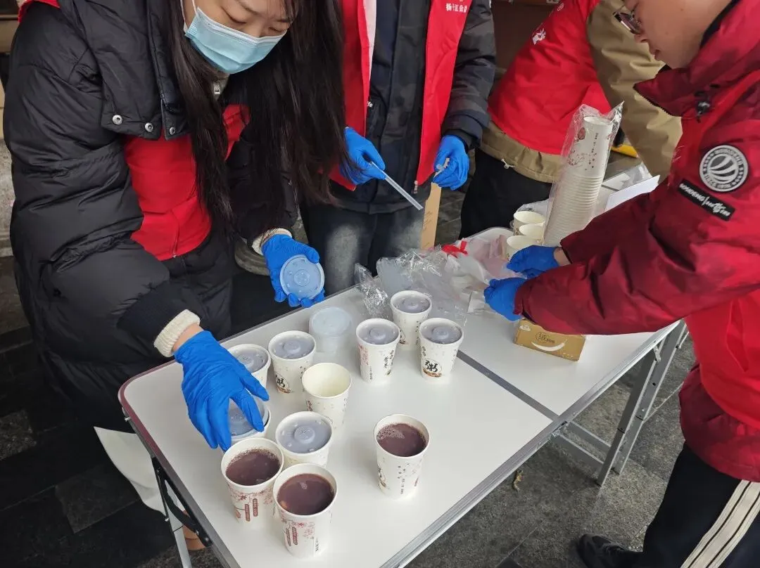 活动现场,志愿者们提前熬制了满满几锅腊八粥,软糯的食材搭配香甜的口感,香气在广场上弥漫。外卖骑手们奔波间隙驻足领取,双手捧着温热的粥碗,脸上露出质朴的笑容。一杯热粥不仅驱散了身体的寒冷,更让户外工作者们感受到了来自社会的认可与温暖。志愿者们还将粥打包后在周边发放,方便骑手们将热粥带在路上,让温暖延续。