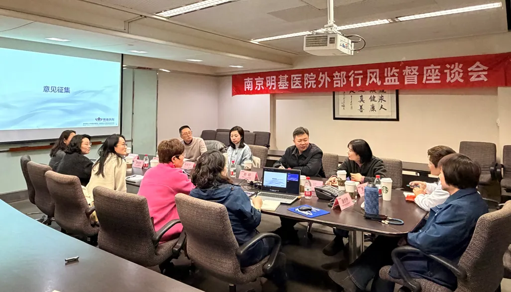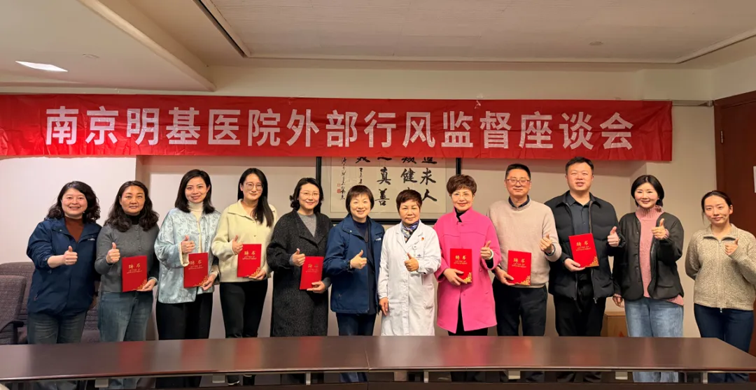 2026年1月23日下午,为持续深化医院行风建设,畅通社会监督渠道,切实提升医疗服务质量与患者就医体验,南京明基医院成功召开2026年度外部行风监督座谈会。医院聘请的7位院外行风监督员,医院李东书记、潘奎静副院长及相关职能部门负责人出席会议,认真听取了监督员的宝贵意见。