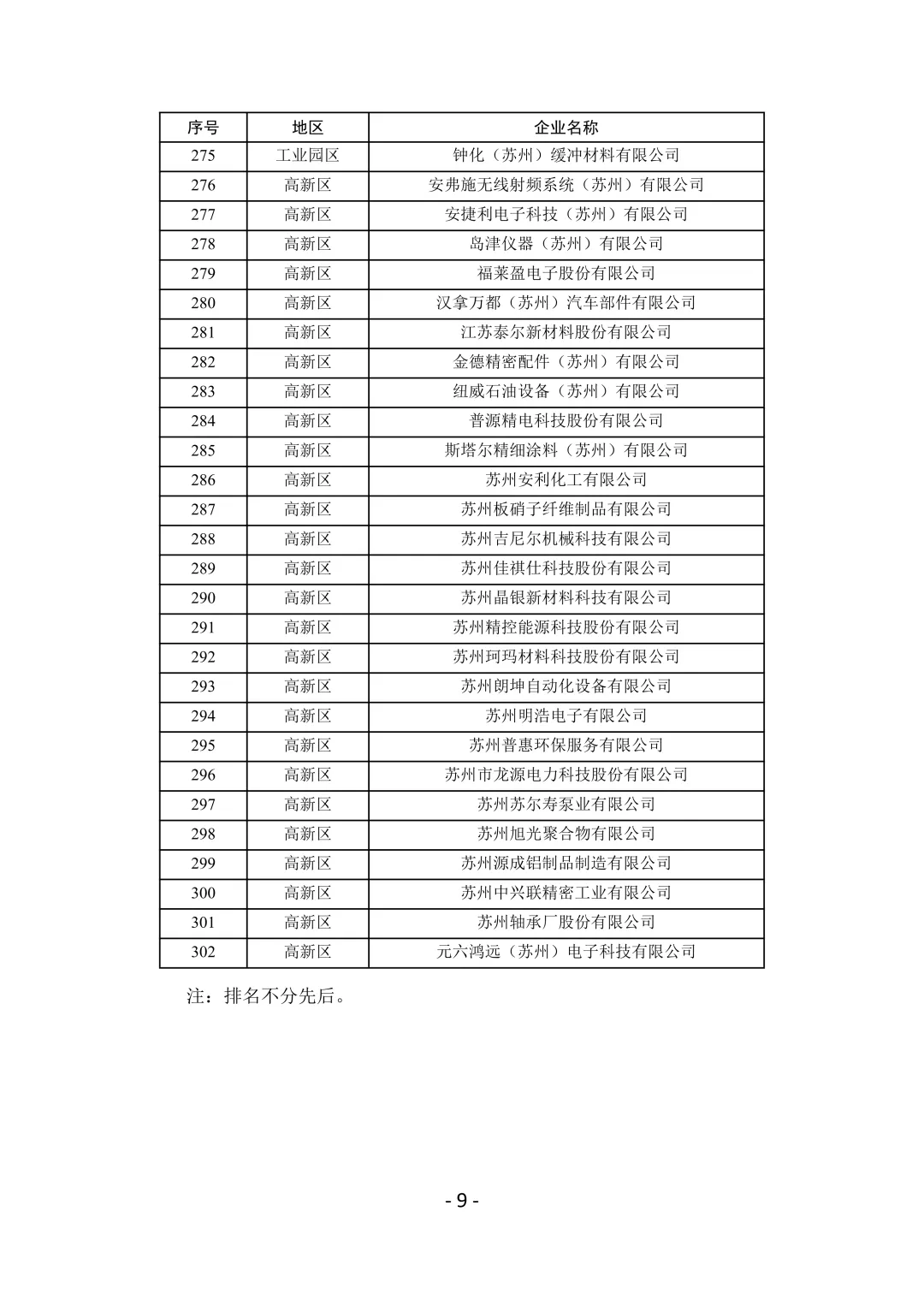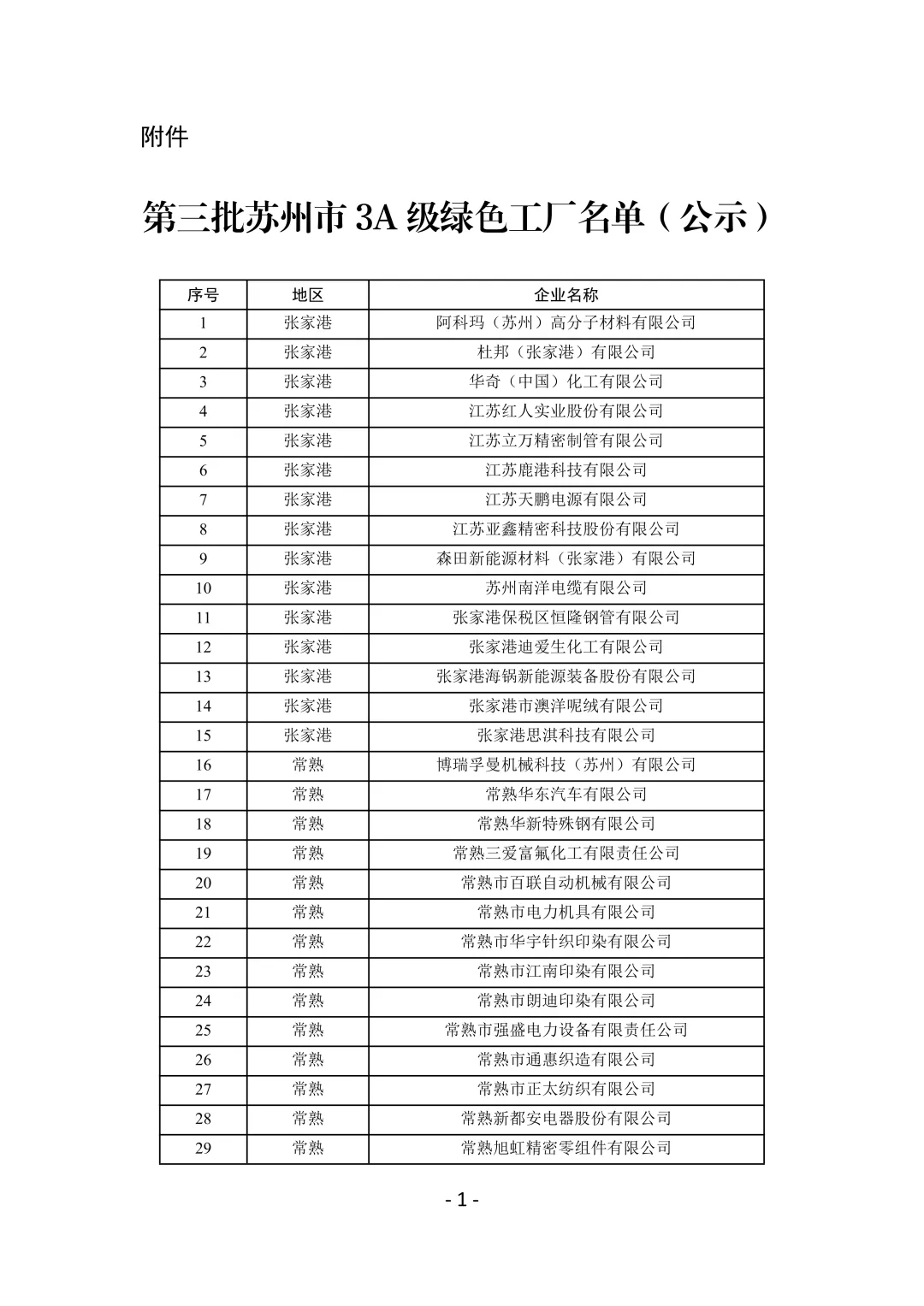 根据《苏州市绿色工厂建设实施方案(试行)》要求,经企业申报、各地初审、专家评审等程序,拟确定第三批苏州市3A级绿色工厂302家,现予以公示(详见附件)。公示期为2026年1月29日至2月5日,如有异议,请在公示期内联系苏州市工信局,联系电话:68616346(业务)、68616367(纪检)。