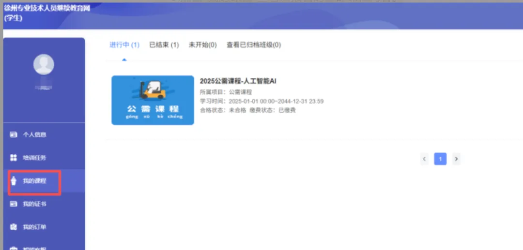 徐州市公需课为免费类课程,每年度完成 1 门学习达标;