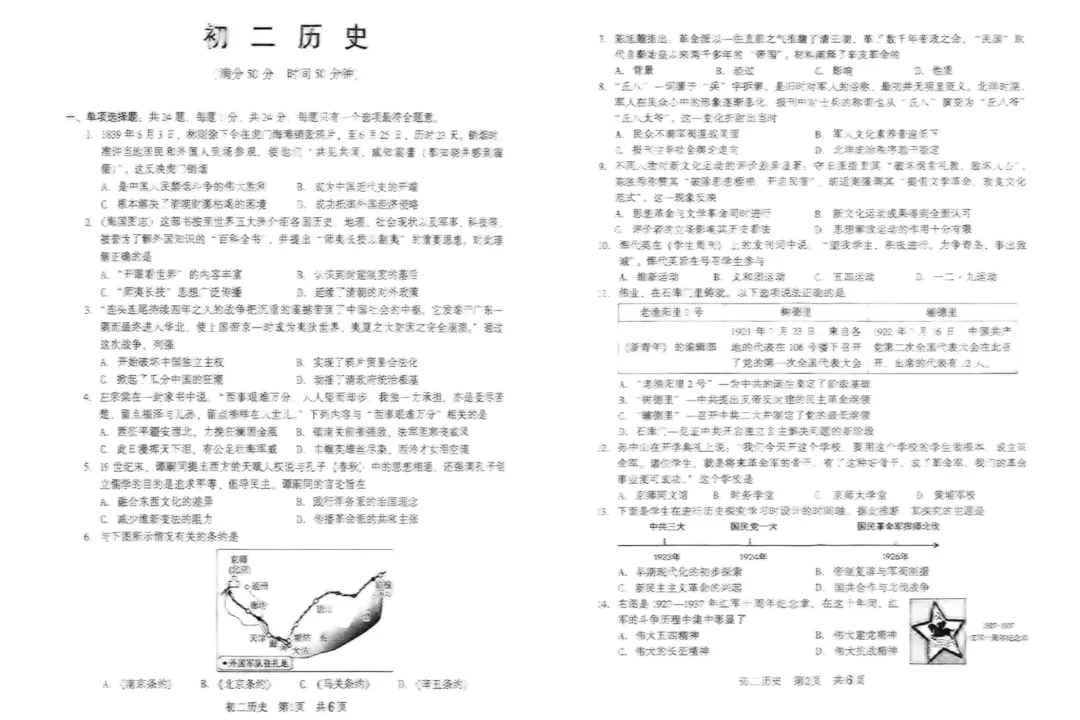 难度适中。知识点分布均匀,对熟悉书本内容、能清晰梳理中国新旧民主主义革命主线的学生较为友好。