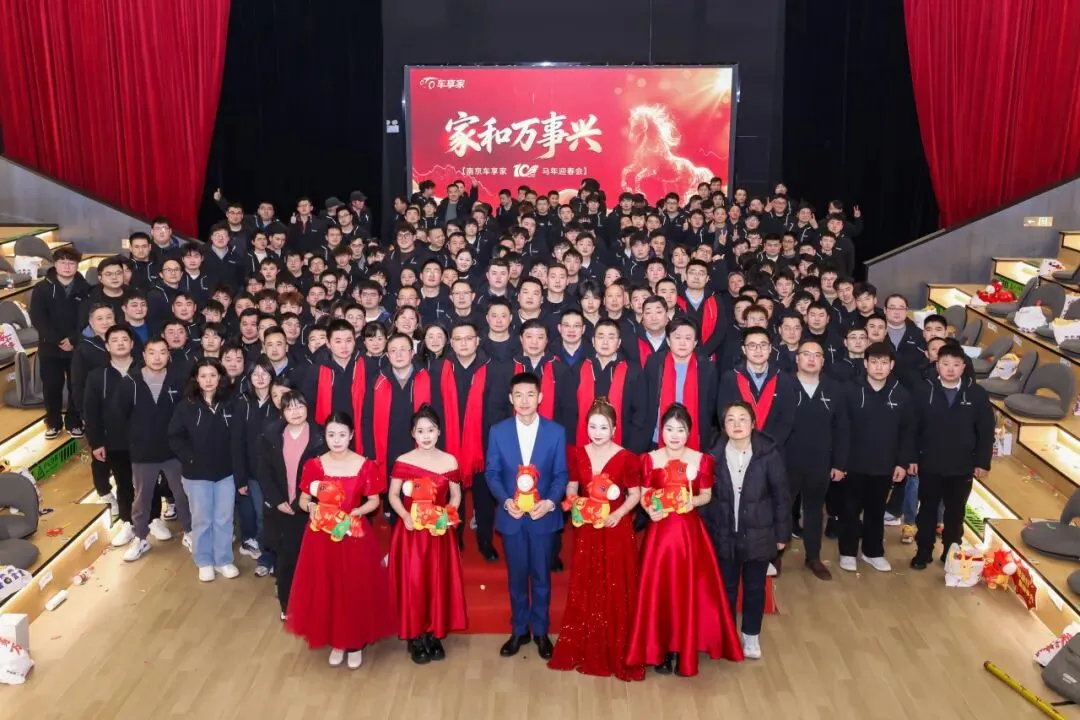 最后,全体人员齐声合唱《相亲相爱一家人》,大会在充满希望的歌声中圆满落下帷幕。大家合影留念,共同祝福南京车享家在下一个十年家业兴旺,共同祝愿新的一年快马扬鞭、马到功成。