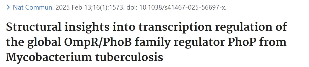 文献来源:Shi J, Feng Z, Song Q, et al. Structural insights into transcription regulation of the global OmpR/PhoB family regulator PhoP from Mycobacterium tuberculosis. Nat Commun. 2025;16(1):1573. Published 2025 Feb 13. doi:10.1038/s41467-025-56697-x