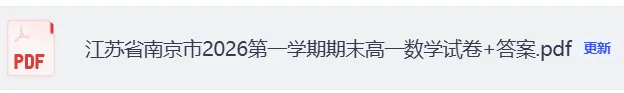 我用夸克网盘给你分享了「江苏省南京市2026第一学期期末高一数学试卷+答案.pdf」,点击链接或复制整段内容,打开「夸克APP」即可获取。