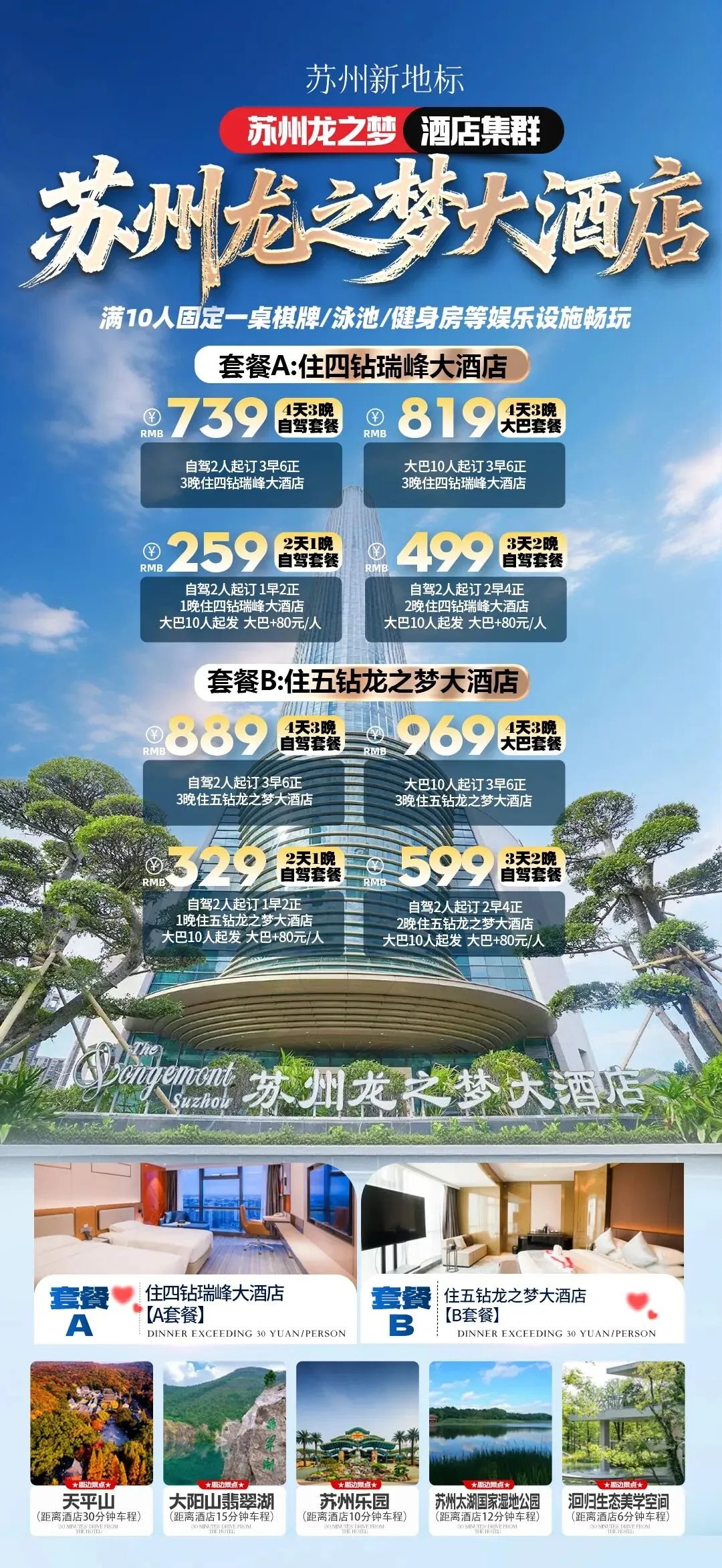 [宿] 1晚苏州龙之梦瑞峰大酒店/2晚苏州龙之梦瑞峰大酒店/3晚苏州龙之梦瑞峰大酒店