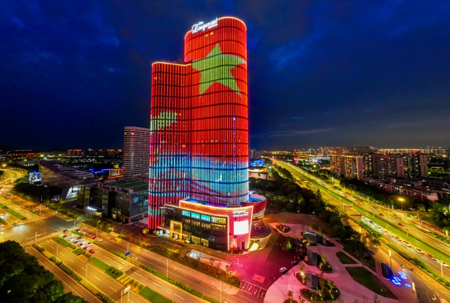 苏州龙之梦酒店集群坐落于高新区太湖大道南、龙山路西,其圆弧形建筑外观极具辨识度,成为太湖科技城的新地标。