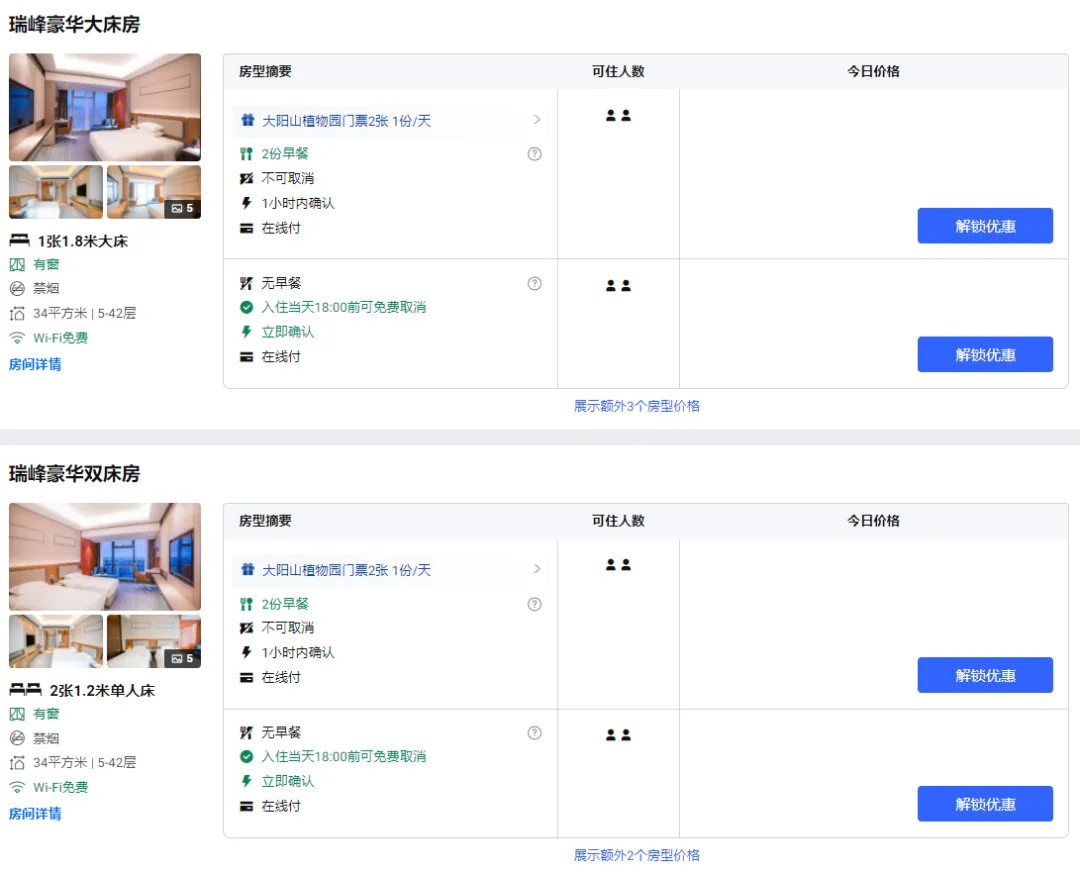 住四钻瑞峰大酒店【A套餐】