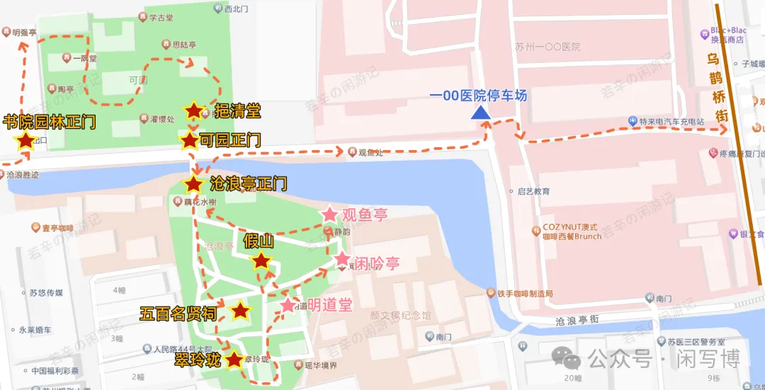 7️⃣从沧浪亭街拐进苏州一00医院内再从西门出去,就是乌鹊桥街,小资的餐馆不少,价格比十全街便宜。