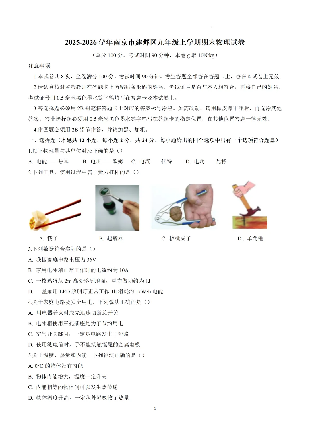 建邺区物理卷