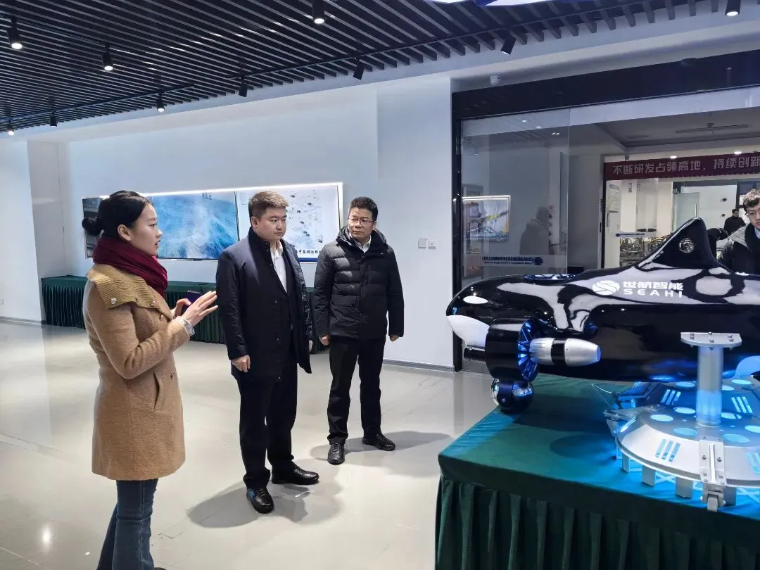 张萍对尚恺喆一行的到访表示欢迎,介绍了企业发展历程、科技产品应用等情况。她表示,苏州世航深耕海洋通用机器人及智能无人装备领域,以助力打造世界领先的全水域战略科技力量、加快海洋强国建设为己任。期待双方能以此次交流为重要契机,深化业务协同与资源联动,紧扣市场实际需求、立足当下产业发展背景,携手探索合作新路径、共谋发展新未来。