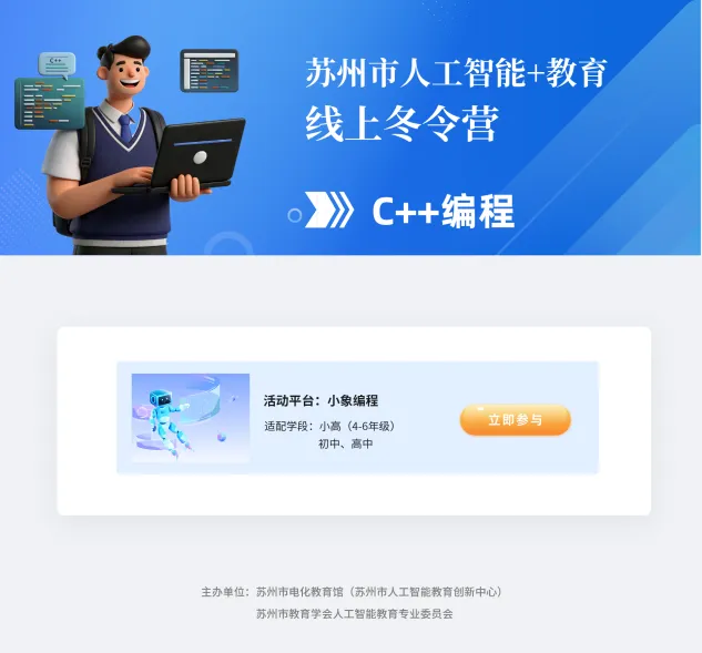 将获得“苏州市人工智能+教育线上冬令营活动优秀指导教师”荣誉证书。
