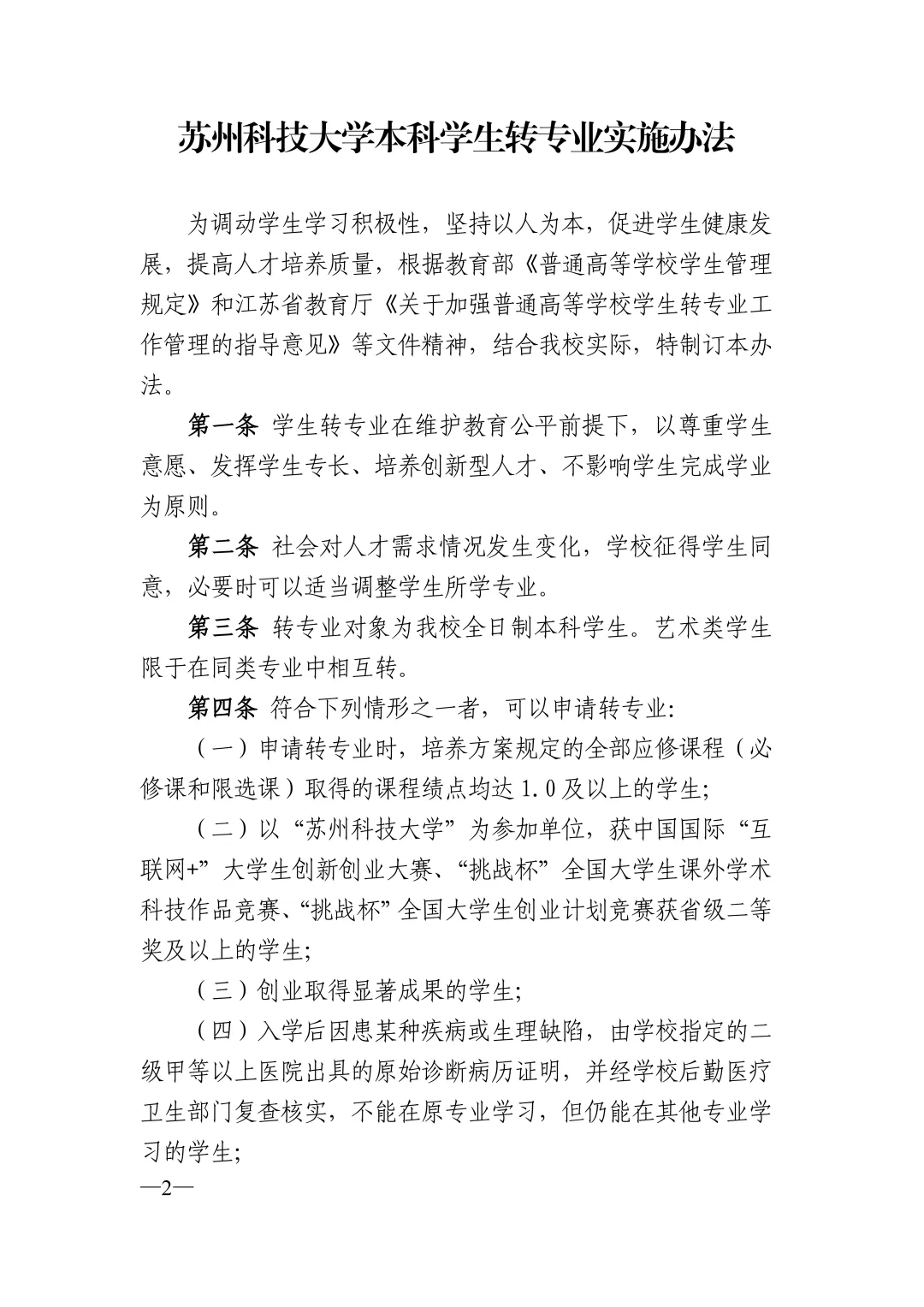 >苏州科技大学最新转专业政策