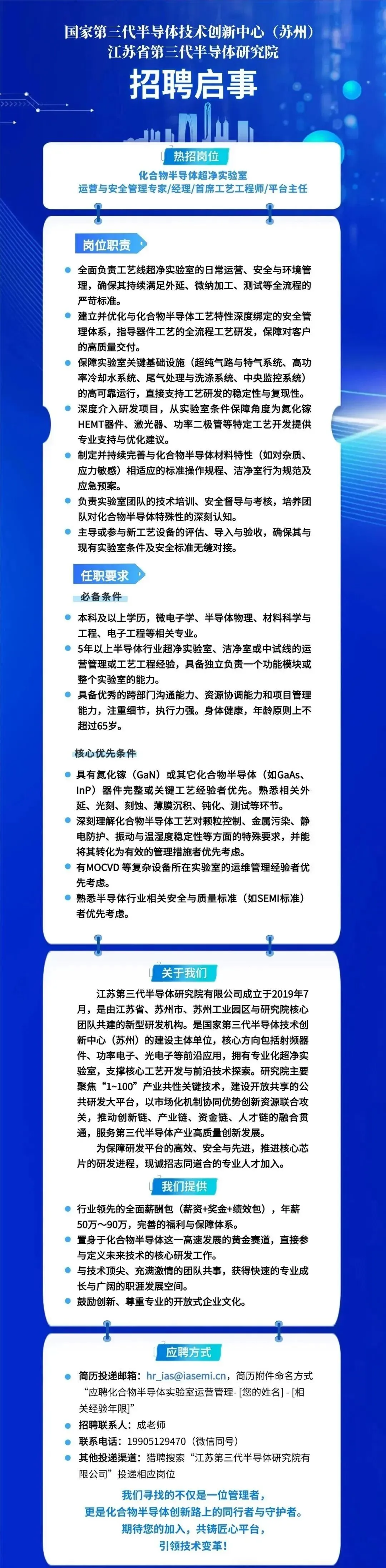 【苏州招聘】江苏第三代半导体研究院招聘启事