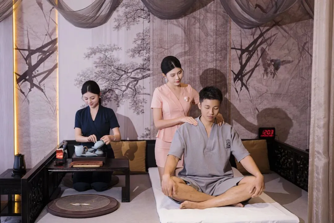 专为长期伏案、缺乏运动的精英定制,以古法推拿手法为基底,搭配天然草本精油,精准揉开肩颈腰背的结节与紧绷肌群。从斜方肌到腰椎筋膜,层层递进舒缓酸胀,配合经络疏通辅助调节代谢,褪去职场高压带来的身体沉滞感,全程无不适感,仅留通体轻盈的松弛态。
