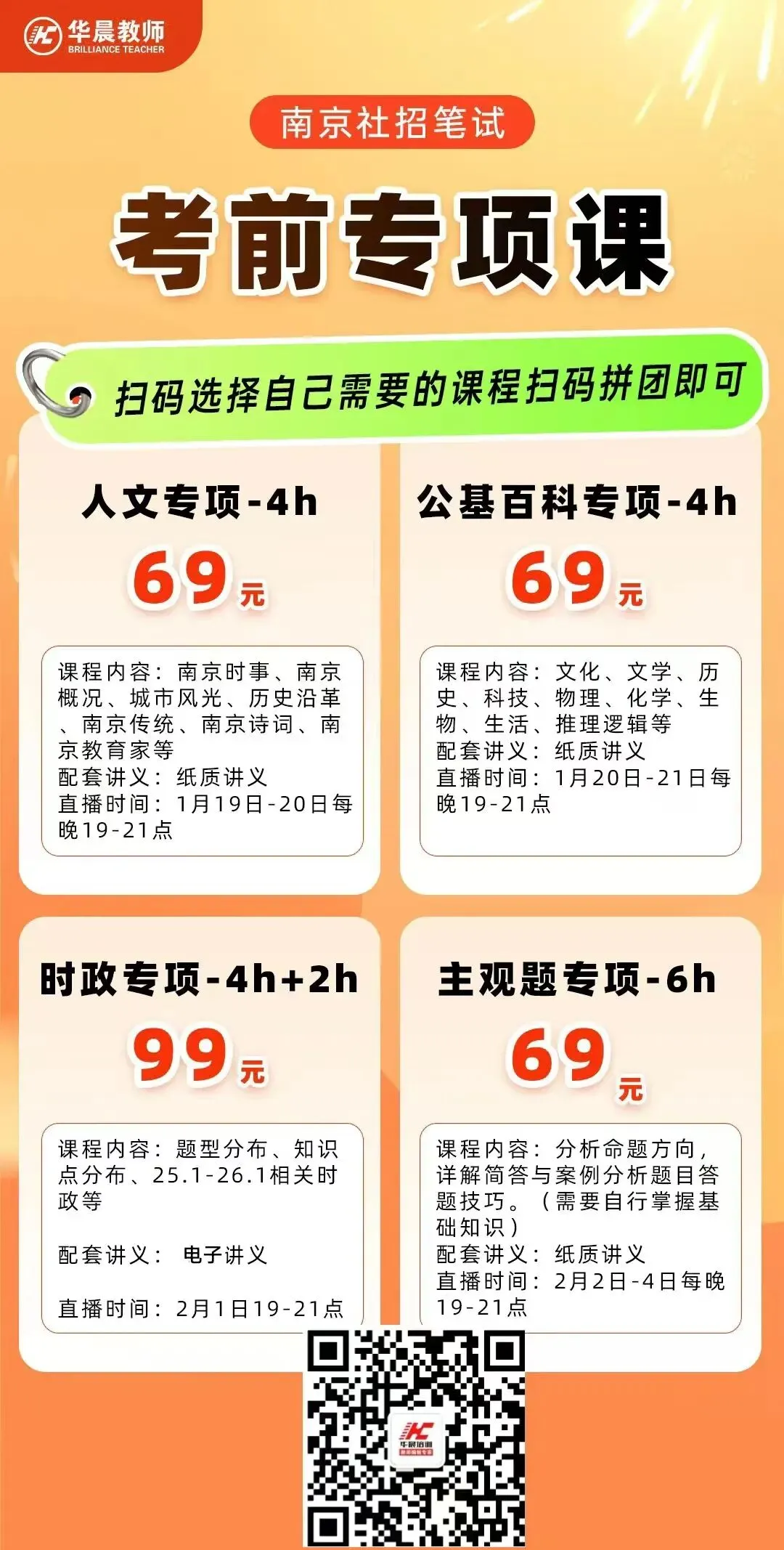 南京人文、时政和公基专项课:这个部分只考客观题,前期不需要花大力气准备,考前背诵押题课讲义即可