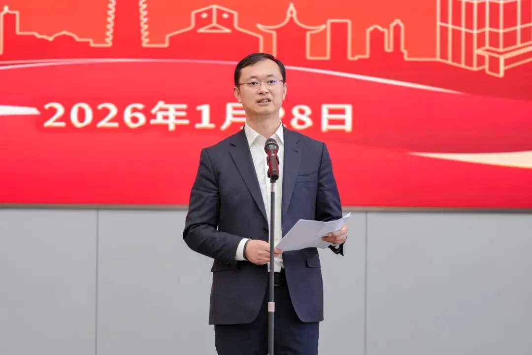 会上,集团党委副书记、总经理陆卫正式宣读了2026年度集团1号文件《关于坚持因地制宜发展新质生产力加快实现新兴产业链跨越式发展的实施意见》。