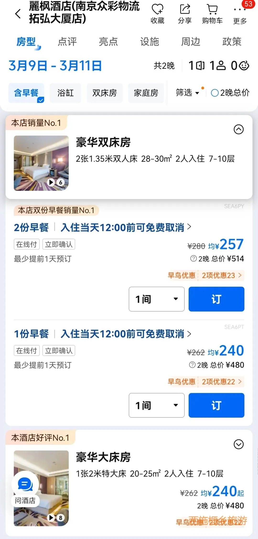 2、住宿:全程入住南京准四酒店丽枫酒店或同级,标间或夫妻房,单人房差100元/人/晚。含洗漱用品。