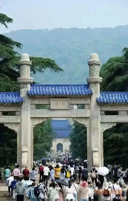 进入景区后,从中山陵陵门开始参观,欣赏博爱坊和陵门的建筑风格。