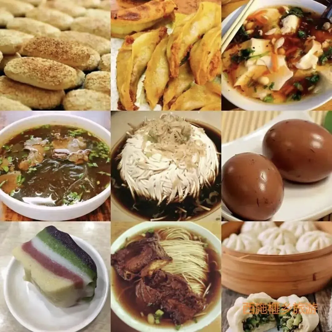 夫子庙小吃“三绝”:奇芳阁的麻油干丝、鸭油酥烧饼 ;