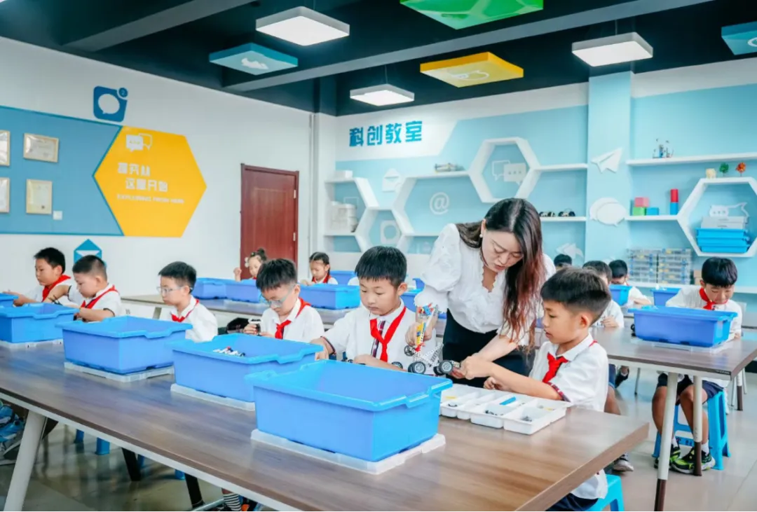 打造“一廊一坊一场一园”学习场域矩阵,推动校园空间由物理存在向育人载体转变。“一廊”即实干家风采廊,呈现各行各业实干者的奋斗足迹与榜样故事,引导学生明方向、立志向;“一坊”即创意梦工坊,融合科技实践与创意设计,激发学生的创新意识,鼓励学生动手实践;“一场”即行动π小剧场,鼓励学生讲述实干故事、分享学习成果,在分享与表达、合作与交流中增强责任意识与自信品质;“一园”即百草园,引导学生观察自然、亲历种植,体悟劳动价值,涵养踏实做事、坚持不懈的实干精神。
