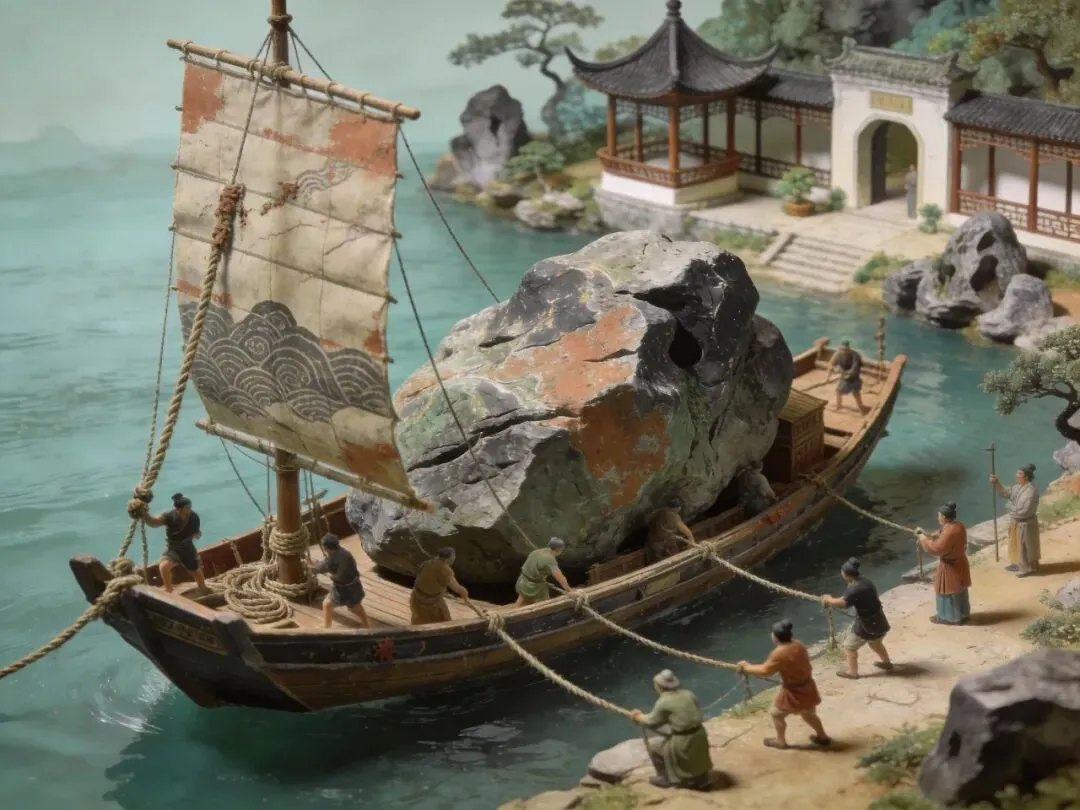 宋代花石纲运送太湖石的场景复原图