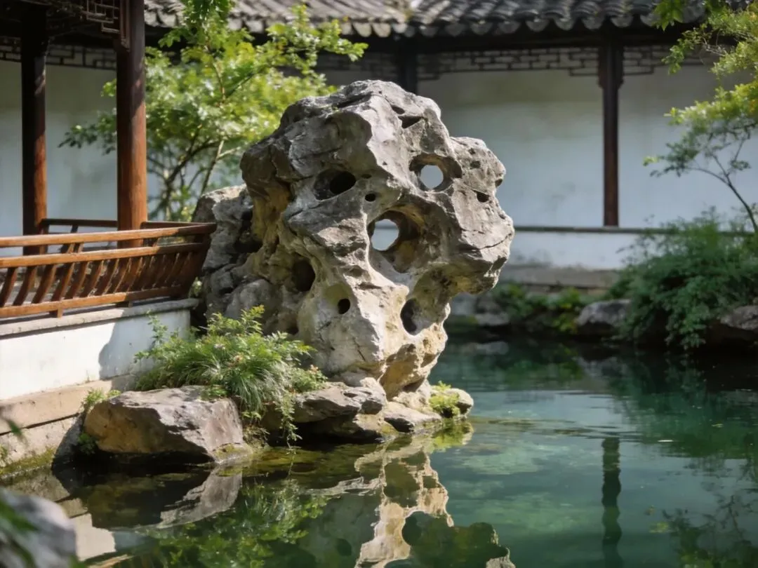 苏州园林中与水景搭配的太湖石