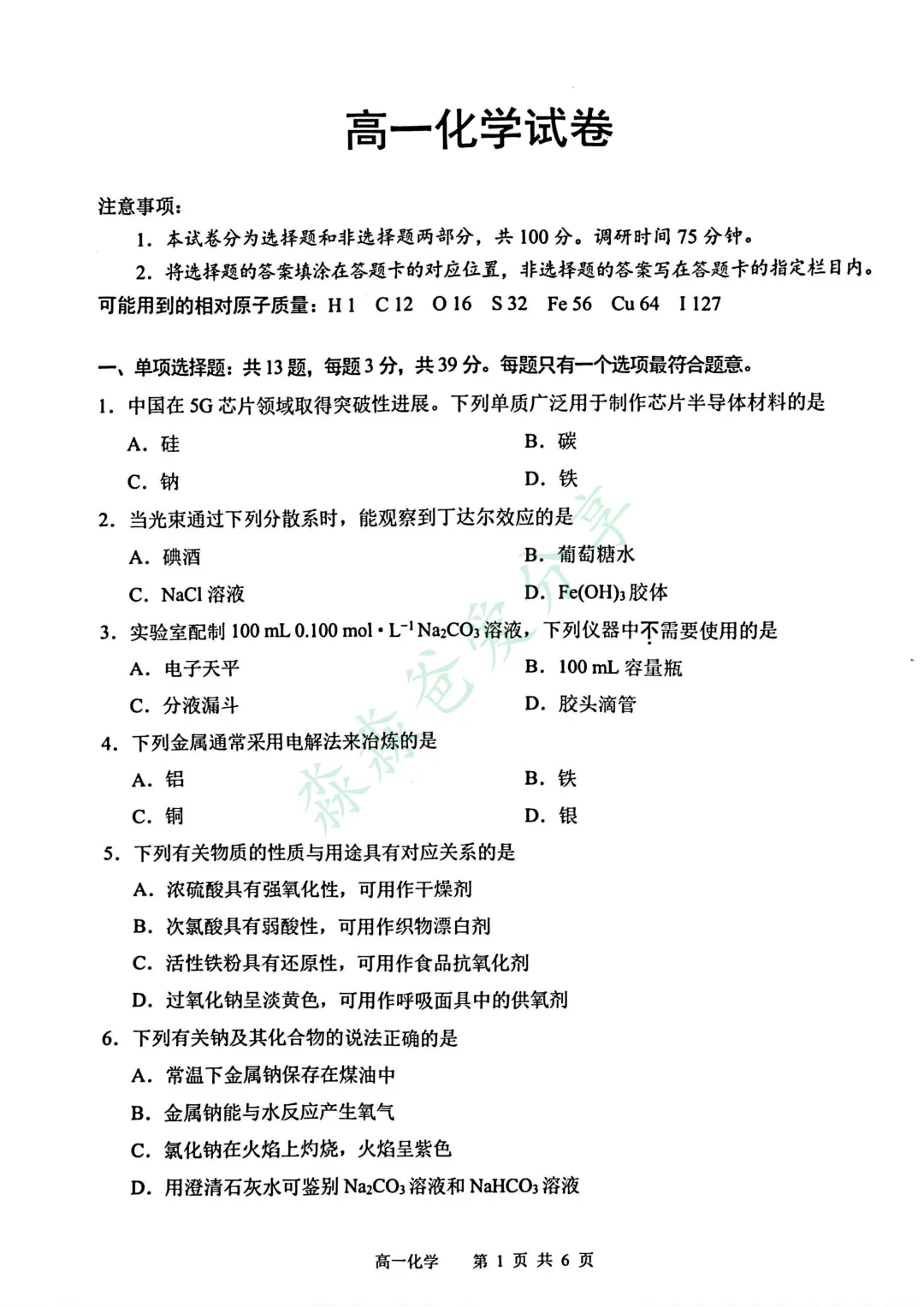 >最新!苏州高一期末化学卷公布!难度中等偏上