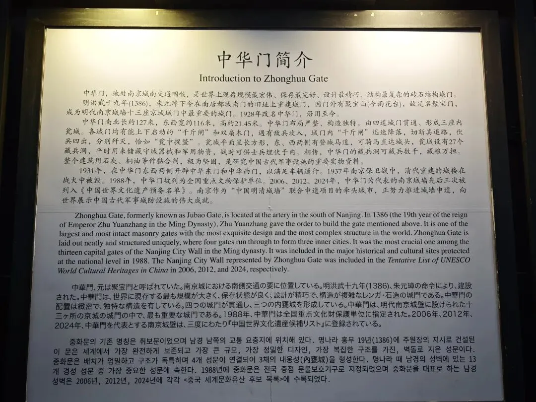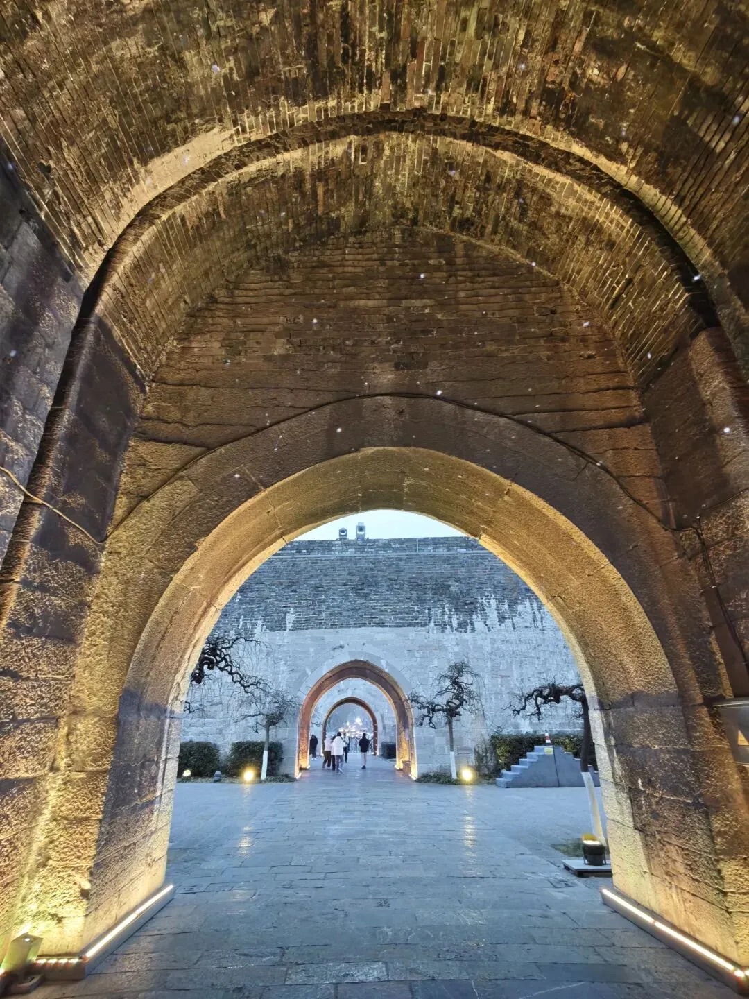 老门东很多建筑还保留着明清时期的建筑风格,青砖黛瓦,小巷幽长,继续延续着老城古韵。偶遇百年古树仍高耸挺拔,古老藤蔓顺势展延,所至所见无不蕴含着南城的古朴典雅。被一段城墙吸引,从没想到在南京还保留有如此古老高大的城墙。南京城墙竟是世界上最长的城墙,也是中国现存规模最大、保存原真性最好的古代城垣。明城墙原长超过35公里,现存25公里。城墙并非全线连通,而是分段落开放,且各有特色。今天无意中走到了中华门一段城墙。在现存城门中,中华门是其中最宏伟的,它拥有四道券门、三道瓮城,是中国现存规模最大的堡垒式瓮城,这里也被称之为“中华门城堡”。真正走在中华门中时,四道券门徐徐展现,就犹如走在了历史时光隧道中。身在瓮城中你会不由震撼于它的雄伟,城墙的厚度超乎想象,很难想象出这样的城堡怎么来攻破。一次特殊的经历,对城墙的坚固有了新的认识和感受。