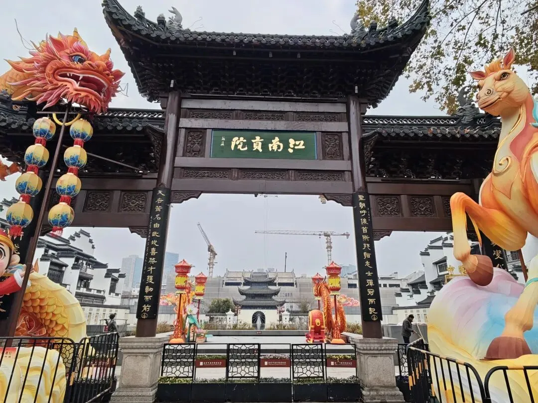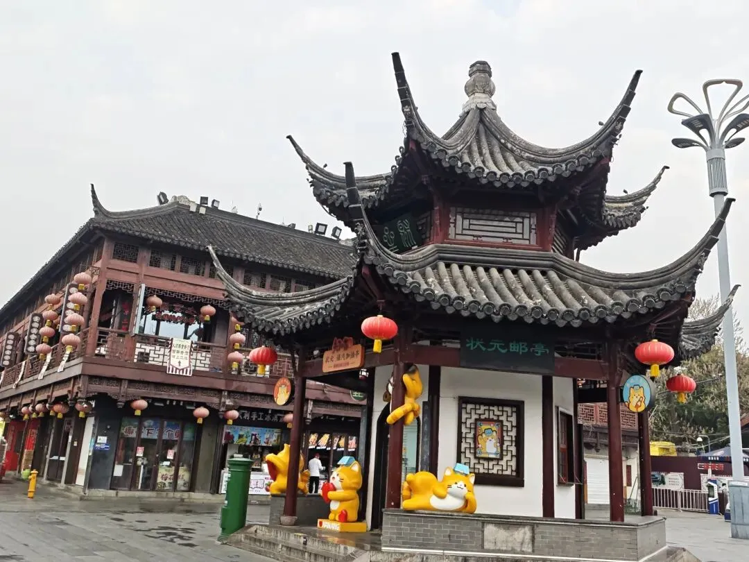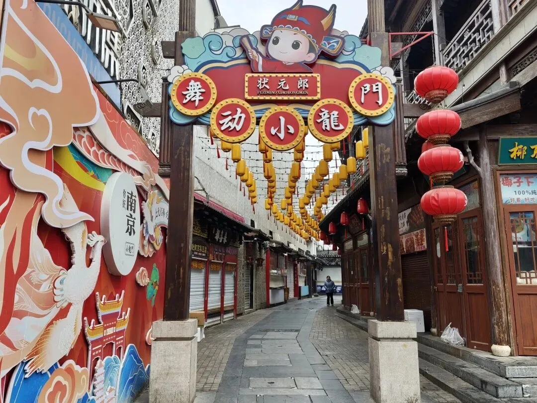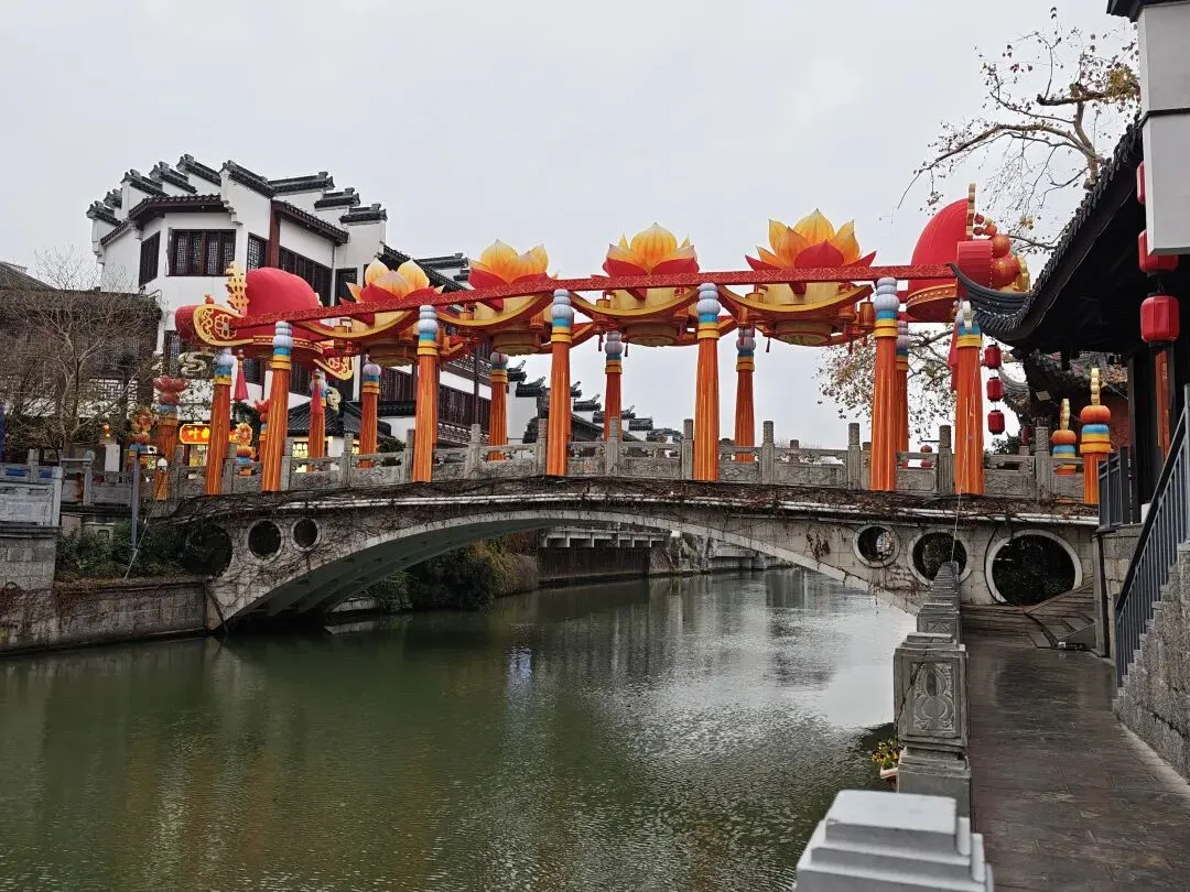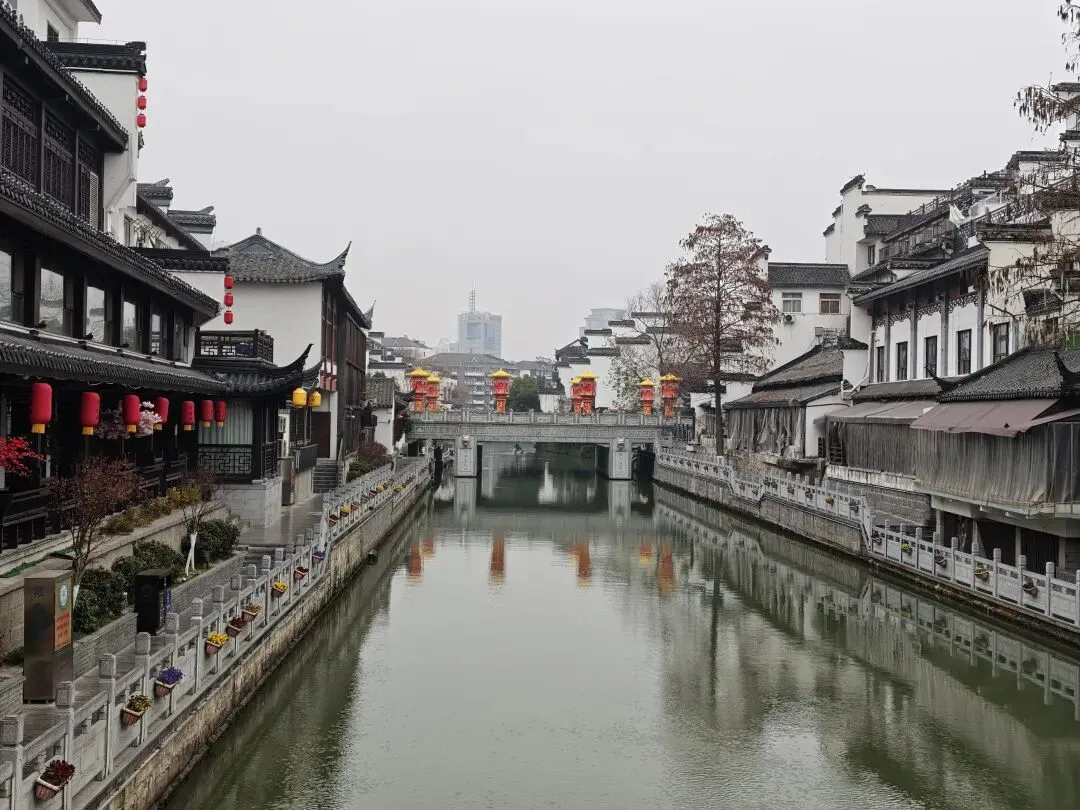 中华门是南京城墙13座京城城门中最重要的城门。城门南北长约127米,东西宽116米,高21米,由四道城门贯通,形成三座内瓮城,各城门均有上下启动的“千斤闸”和“双扇木门”。瓮城有登城马道,设有27个藏兵洞。多处藏兵洞处于开放中,现在很多是作为博物馆存在着,在明朝它或作为储藏功用,或战时会作为驻兵而用,一个藏兵洞可驻扎千人。藏兵洞也是第一层劵门的地下空间,洞都如此之深,也不得不再次惊叹城墙的厚度了。作为京城瓮城真是铜墙铁壁,大有一夫当关,万夫莫开的气势。在中华门东西两侧开辟中华东门和中华西门,以满足车辆通行。登城墙,中华门一段城墙的顶部宽度大约11米,大约是3个车道的宽度。城墙底部大约20米。也是体现了“高筑墙”的防御宗旨。城墙之上也可租车代步。透过城墙南侧,也可观看到夜色下外秦淮河的风光,外秦淮河也曾是南京城南的天然护城河。中华门则是明代京城的正南门。城墙北侧则可登高望远老门东的繁华与热闹。青砖黛瓦马头墙的明清建筑群灯火辉煌,主街区中更是热闹非常,人头攒动,娱乐的音乐响彻整个上空。我们在城墙上从中华门走到赤石矶。也是浅浅见识了南京城墙的特殊魅力。从城墙下来,又回到老门东热闹的主街区中。虽离春节还有1个月,也是提前体验到了春节期间的人潮涌动,都是来看花灯的。主街上,也是一派繁华景象,每个店铺灯火辉煌,装饰的灯具也是千奇百态、争奇斗艳。街边一棵古树上挂满了各式各样五彩缤纷的花灯,又是吸引着人潮一波波涌来,不得已被迫采取了限流的措施。出老门东牌坊有很多特色餐馆,有些人气餐馆也是一位难求。我们最终选择了苏小蟹-蟹黄面,在此品尝了江南蟹黄面、蟹黄大汤包、盐水鸭、青提豆花,既有特色又美味。在南京的每一顿餐食,味蕾都得到了极大的满足。从南博出来往老门东途中,有点饿,先在偶遇的一个当地普通小馆品尝了鸭血粉丝汤、蟹黄包和鸭油烧饼。蟹黄包和蟹黄汤包还是有不同,蟹黄包是能吃到肉馅,蟹黄汤包则主要是喝汤的,两种包的名称相似,吃起来的感觉还真差别挺大的,都非常好吃。酒店特意定在了夫子庙附近,在回酒店的路上就能看到内秦淮河。小桥流水人家在灯光映衬下,每一次看,都是美的,看不够。第二日一早,先是继续品尝当地特色吃食,老新隆牛肉锅贴店吃牛肉锅贴、酒酿元宵、风味虾仁馄饨,照例吃的满足。来夫子庙多次,大多都是临傍晚到,看到的都是夜景。秦淮河的夜景虽经典,但也很想想看看这一片建筑真实的模样。住在附近的优势显现,能在人最少时,尽情的无打扰的游逛。这也是我们总结出的经验,尽量住在景区或重要街区,这样总能在人少时再走一走。随着缓步进入夫子庙区域,一栋栋建筑、一座座小桥,一个个场景徐徐展开来。建筑的制式、色彩,小桥的式样,这次也是看的很清楚了。清晨的秦淮河没有了夜色中的喧嚣,周围一切都是静悄悄的,没有门店开门,只有建筑、桥儿、水儿在等待着有缘人。白色的墙、黛色的瓦、红色的窗、青色的桥、绿色的水、鲜活的植物,灵动的装饰物……我贪婪的左看右看上看下看,被眼前这幅宁静和谐的江南山水画深深吸引着。这里曾是中国历史上规模最大、影响最广的科举考场。鼎盛时期可容纳2万多名考生同时考试。