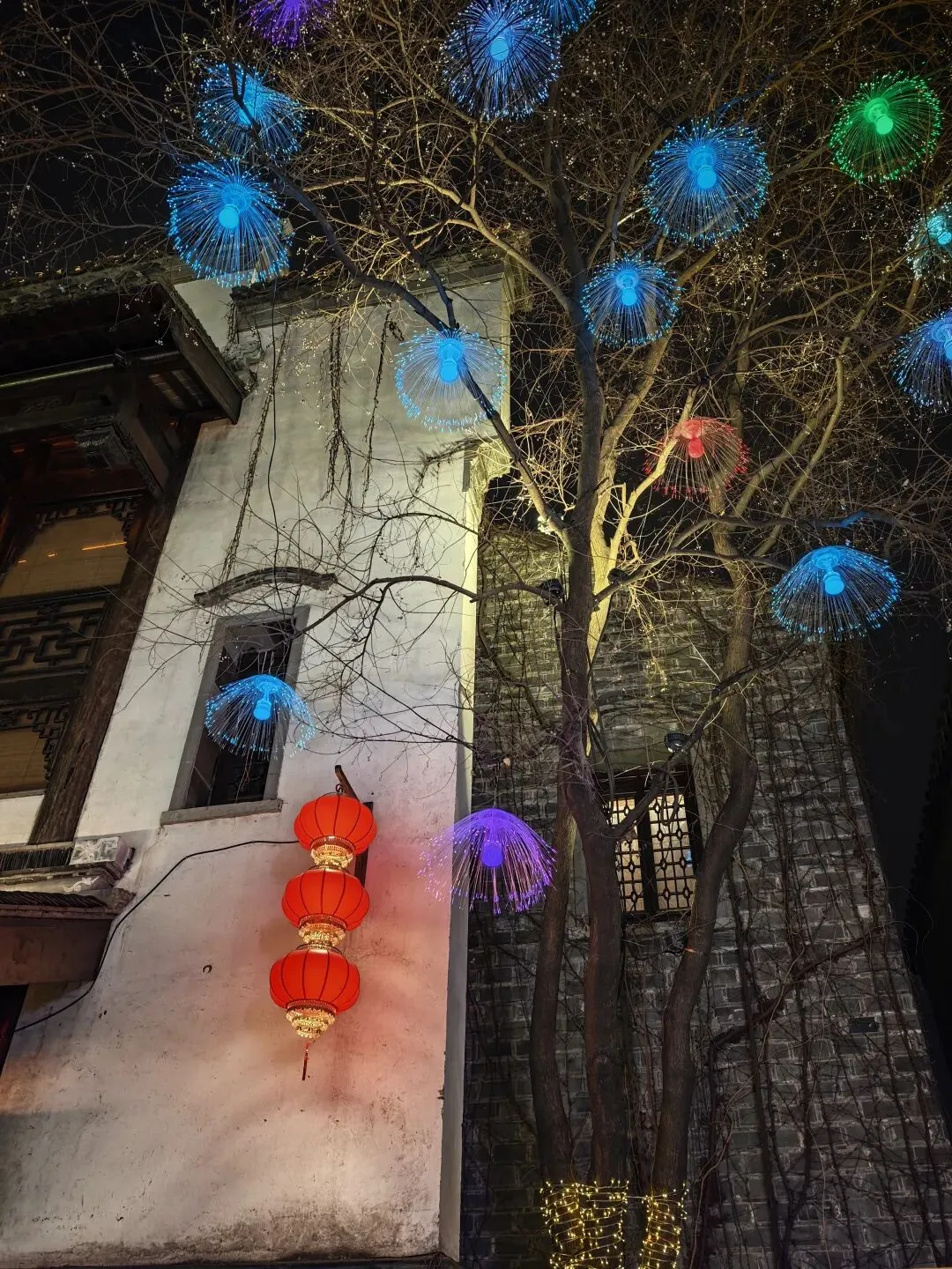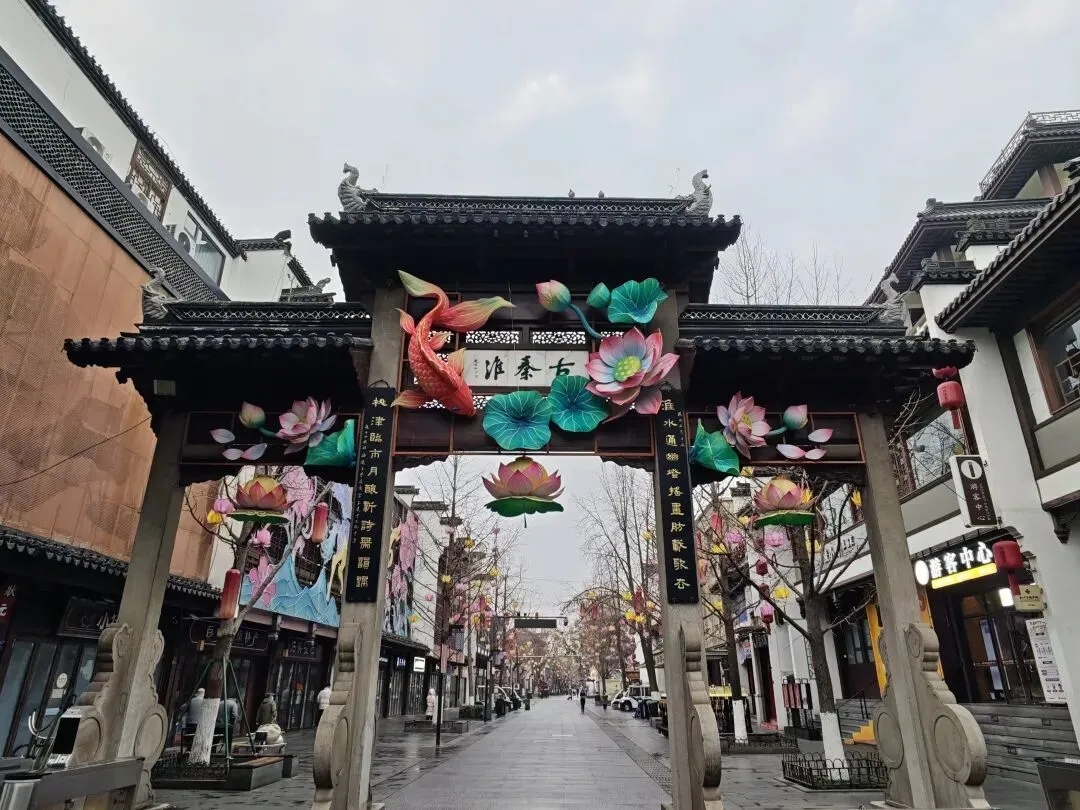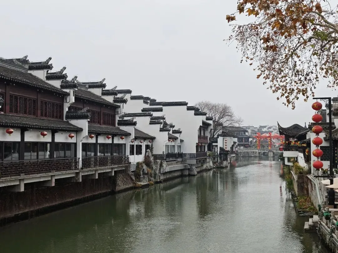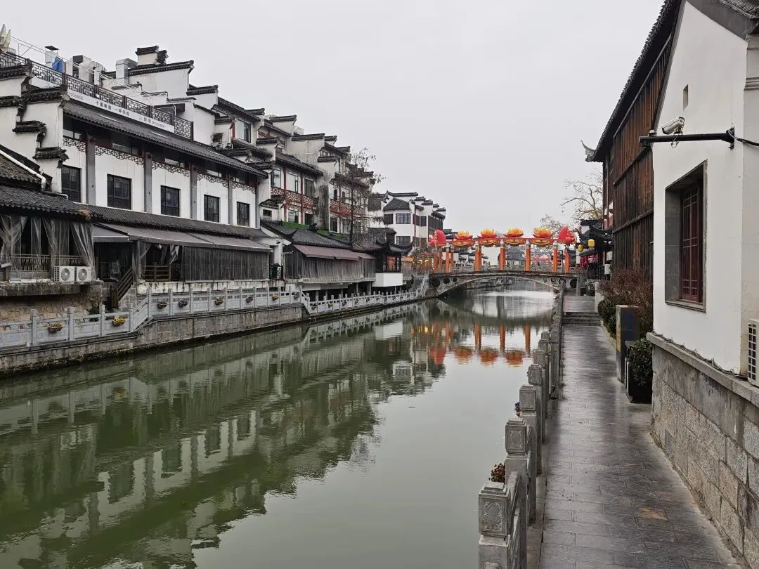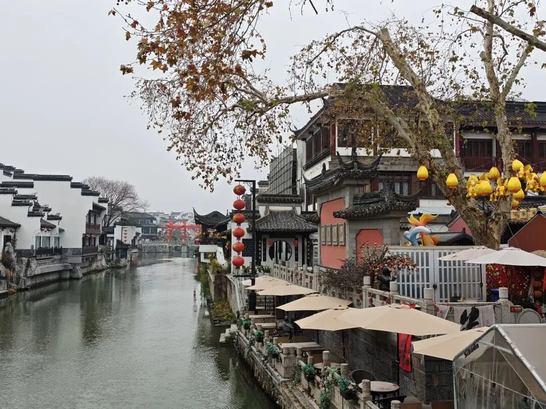 中华门是南京城墙13座京城城门中最重要的城门。城门南北长约127米,东西宽116米,高21米,由四道城门贯通,形成三座内瓮城,各城门均有上下启动的“千斤闸”和“双扇木门”。瓮城有登城马道,设有27个藏兵洞。多处藏兵洞处于开放中,现在很多是作为博物馆存在着,在明朝它或作为储藏功用,或战时会作为驻兵而用,一个藏兵洞可驻扎千人。藏兵洞也是第一层劵门的地下空间,洞都如此之深,也不得不再次惊叹城墙的厚度了。作为京城瓮城真是铜墙铁壁,大有一夫当关,万夫莫开的气势。在中华门东西两侧开辟中华东门和中华西门,以满足车辆通行。登城墙,中华门一段城墙的顶部宽度大约11米,大约是3个车道的宽度。城墙底部大约20米。也是体现了“高筑墙”的防御宗旨。城墙之上也可租车代步。透过城墙南侧,也可观看到夜色下外秦淮河的风光,外秦淮河也曾是南京城南的天然护城河。中华门则是明代京城的正南门。城墙北侧则可登高望远老门东的繁华与热闹。青砖黛瓦马头墙的明清建筑群灯火辉煌,主街区中更是热闹非常,人头攒动,娱乐的音乐响彻整个上空。我们在城墙上从中华门走到赤石矶。也是浅浅见识了南京城墙的特殊魅力。从城墙下来,又回到老门东热闹的主街区中。虽离春节还有1个月,也是提前体验到了春节期间的人潮涌动,都是来看花灯的。主街上,也是一派繁华景象,每个店铺灯火辉煌,装饰的灯具也是千奇百态、争奇斗艳。街边一棵古树上挂满了各式各样五彩缤纷的花灯,又是吸引着人潮一波波涌来,不得已被迫采取了限流的措施。出老门东牌坊有很多特色餐馆,有些人气餐馆也是一位难求。我们最终选择了苏小蟹-蟹黄面,在此品尝了江南蟹黄面、蟹黄大汤包、盐水鸭、青提豆花,既有特色又美味。在南京的每一顿餐食,味蕾都得到了极大的满足。从南博出来往老门东途中,有点饿,先在偶遇的一个当地普通小馆品尝了鸭血粉丝汤、蟹黄包和鸭油烧饼。蟹黄包和蟹黄汤包还是有不同,蟹黄包是能吃到肉馅,蟹黄汤包则主要是喝汤的,两种包的名称相似,吃起来的感觉还真差别挺大的,都非常好吃。酒店特意定在了夫子庙附近,在回酒店的路上就能看到内秦淮河。小桥流水人家在灯光映衬下,每一次看,都是美的,看不够。第二日一早,先是继续品尝当地特色吃食,老新隆牛肉锅贴店吃牛肉锅贴、酒酿元宵、风味虾仁馄饨,照例吃的满足。来夫子庙多次,大多都是临傍晚到,看到的都是夜景。秦淮河的夜景虽经典,但也很想想看看这一片建筑真实的模样。住在附近的优势显现,能在人最少时,尽情的无打扰的游逛。这也是我们总结出的经验,尽量住在景区或重要街区,这样总能在人少时再走一走。随着缓步进入夫子庙区域,一栋栋建筑、一座座小桥,一个个场景徐徐展开来。建筑的制式、色彩,小桥的式样,这次也是看的很清楚了。清晨的秦淮河没有了夜色中的喧嚣,周围一切都是静悄悄的,没有门店开门,只有建筑、桥儿、水儿在等待着有缘人。白色的墙、黛色的瓦、红色的窗、青色的桥、绿色的水、鲜活的植物,灵动的装饰物……我贪婪的左看右看上看下看,被眼前这幅宁静和谐的江南山水画深深吸引着。这里曾是中国历史上规模最大、影响最广的科举考场。鼎盛时期可容纳2万多名考生同时考试。