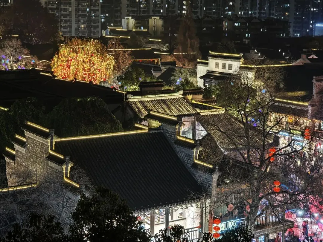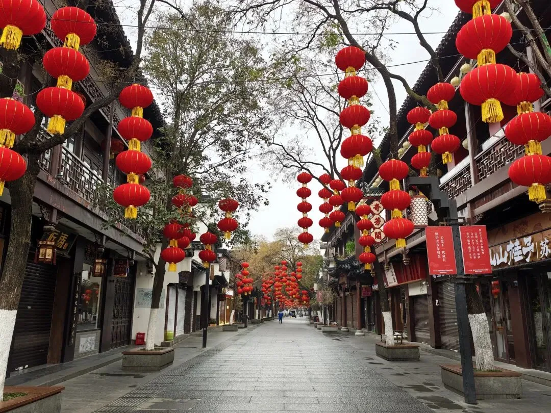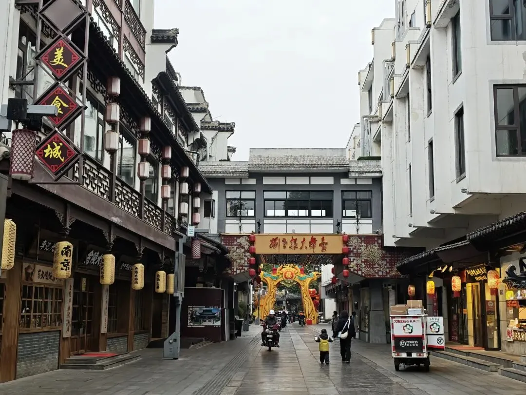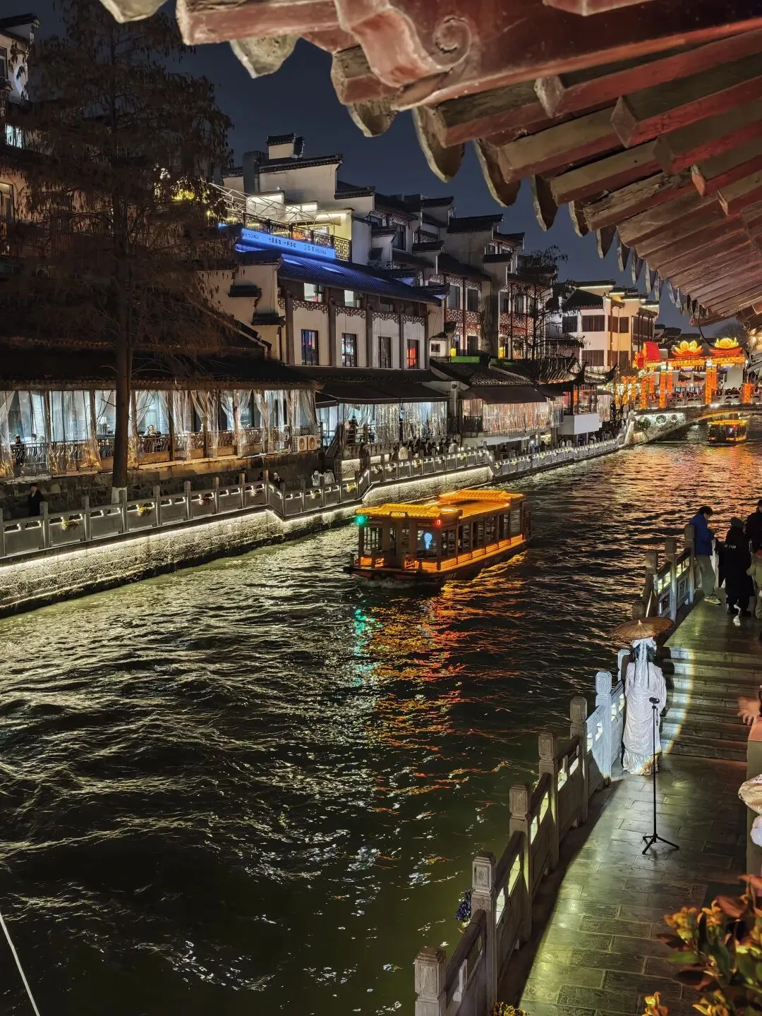 中华门是南京城墙13座京城城门中最重要的城门。城门南北长约127米,东西宽116米,高21米,由四道城门贯通,形成三座内瓮城,各城门均有上下启动的“千斤闸”和“双扇木门”。瓮城有登城马道,设有27个藏兵洞。多处藏兵洞处于开放中,现在很多是作为博物馆存在着,在明朝它或作为储藏功用,或战时会作为驻兵而用,一个藏兵洞可驻扎千人。藏兵洞也是第一层劵门的地下空间,洞都如此之深,也不得不再次惊叹城墙的厚度了。作为京城瓮城真是铜墙铁壁,大有一夫当关,万夫莫开的气势。在中华门东西两侧开辟中华东门和中华西门,以满足车辆通行。登城墙,中华门一段城墙的顶部宽度大约11米,大约是3个车道的宽度。城墙底部大约20米。也是体现了“高筑墙”的防御宗旨。城墙之上也可租车代步。透过城墙南侧,也可观看到夜色下外秦淮河的风光,外秦淮河也曾是南京城南的天然护城河。中华门则是明代京城的正南门。城墙北侧则可登高望远老门东的繁华与热闹。青砖黛瓦马头墙的明清建筑群灯火辉煌,主街区中更是热闹非常,人头攒动,娱乐的音乐响彻整个上空。我们在城墙上从中华门走到赤石矶。也是浅浅见识了南京城墙的特殊魅力。从城墙下来,又回到老门东热闹的主街区中。虽离春节还有1个月,也是提前体验到了春节期间的人潮涌动,都是来看花灯的。主街上,也是一派繁华景象,每个店铺灯火辉煌,装饰的灯具也是千奇百态、争奇斗艳。街边一棵古树上挂满了各式各样五彩缤纷的花灯,又是吸引着人潮一波波涌来,不得已被迫采取了限流的措施。出老门东牌坊有很多特色餐馆,有些人气餐馆也是一位难求。我们最终选择了苏小蟹-蟹黄面,在此品尝了江南蟹黄面、蟹黄大汤包、盐水鸭、青提豆花,既有特色又美味。在南京的每一顿餐食,味蕾都得到了极大的满足。从南博出来往老门东途中,有点饿,先在偶遇的一个当地普通小馆品尝了鸭血粉丝汤、蟹黄包和鸭油烧饼。蟹黄包和蟹黄汤包还是有不同,蟹黄包是能吃到肉馅,蟹黄汤包则主要是喝汤的,两种包的名称相似,吃起来的感觉还真差别挺大的,都非常好吃。酒店特意定在了夫子庙附近,在回酒店的路上就能看到内秦淮河。小桥流水人家在灯光映衬下,每一次看,都是美的,看不够。第二日一早,先是继续品尝当地特色吃食,老新隆牛肉锅贴店吃牛肉锅贴、酒酿元宵、风味虾仁馄饨,照例吃的满足。来夫子庙多次,大多都是临傍晚到,看到的都是夜景。秦淮河的夜景虽经典,但也很想想看看这一片建筑真实的模样。住在附近的优势显现,能在人最少时,尽情的无打扰的游逛。这也是我们总结出的经验,尽量住在景区或重要街区,这样总能在人少时再走一走。随着缓步进入夫子庙区域,一栋栋建筑、一座座小桥,一个个场景徐徐展开来。建筑的制式、色彩,小桥的式样,这次也是看的很清楚了。清晨的秦淮河没有了夜色中的喧嚣,周围一切都是静悄悄的,没有门店开门,只有建筑、桥儿、水儿在等待着有缘人。白色的墙、黛色的瓦、红色的窗、青色的桥、绿色的水、鲜活的植物,灵动的装饰物……我贪婪的左看右看上看下看,被眼前这幅宁静和谐的江南山水画深深吸引着。这里曾是中国历史上规模最大、影响最广的科举考场。鼎盛时期可容纳2万多名考生同时考试。