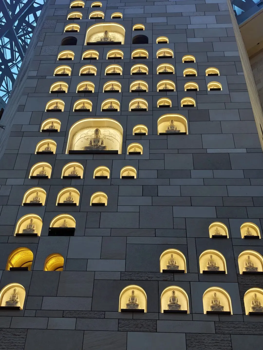 走到牛首山西峰山巅,豁然开朗,佛顶宫和佛顶塔遥相呼应出现在眼前。迫不及待走向在图片中看过多次的佛顶宫,今日终于也是真真实实是对这个建筑有了亲身的接触。佛顶宫是为安奉佛教界至高圣物——佛顶骨舍利(释迦牟尼佛顶骨真身舍利) 而特别修建的宫殿式建筑。它坐落于牛首山西峰的采矿坑遗址之上,巧妙利用自然环境,形成了“莲花托珍宝”的宏伟格局。