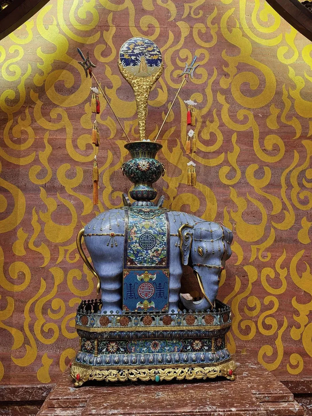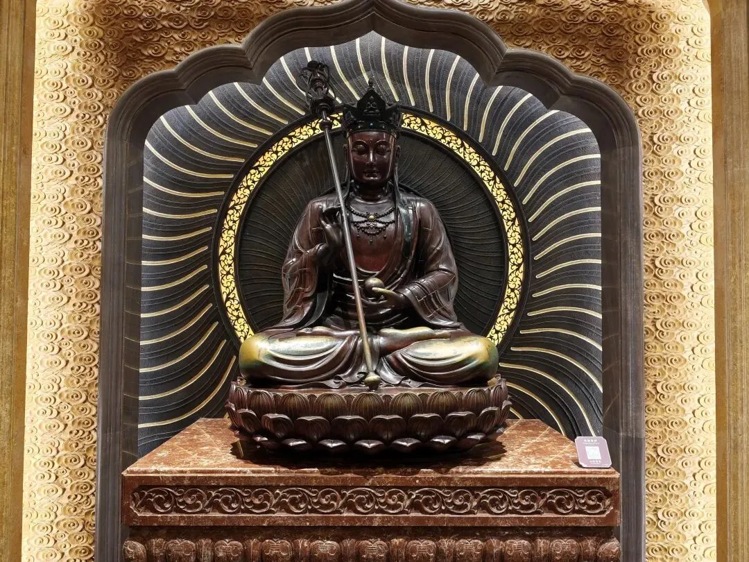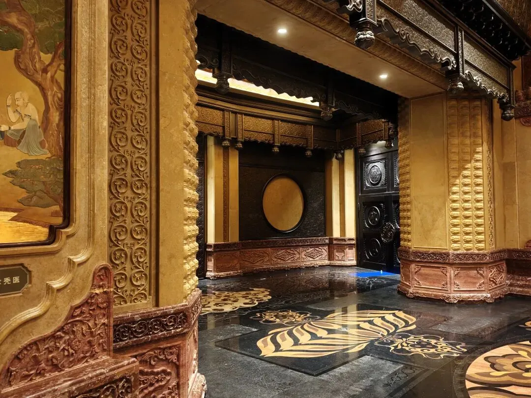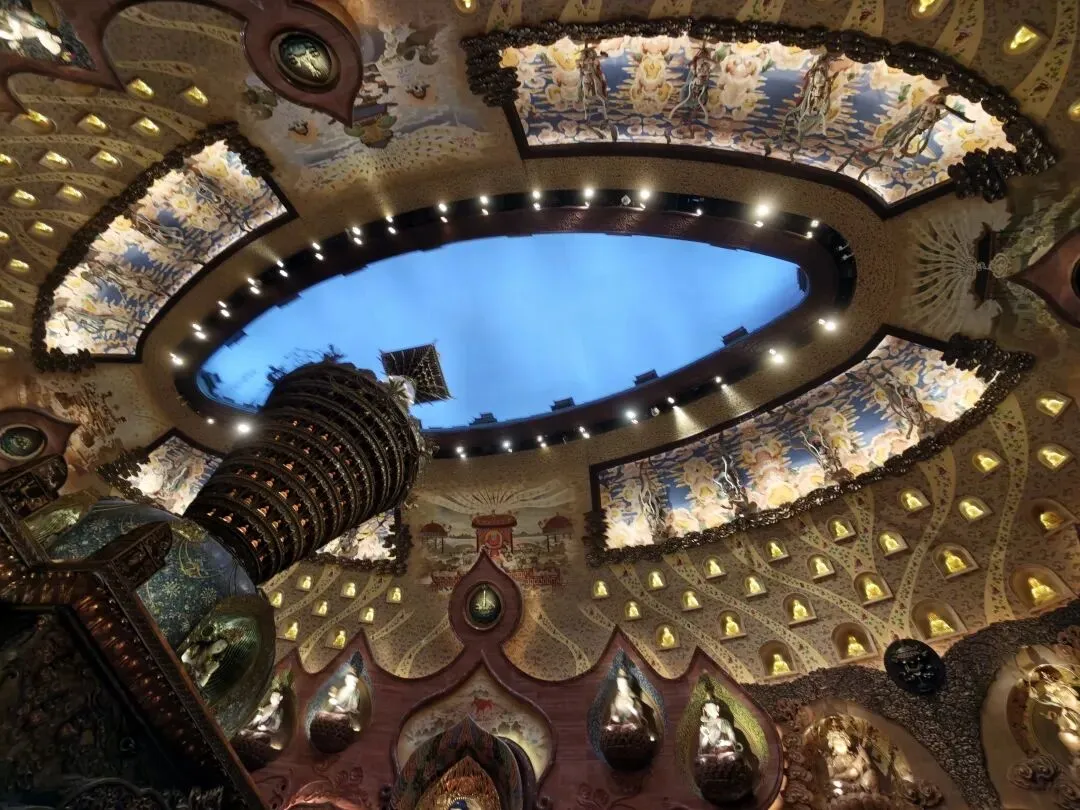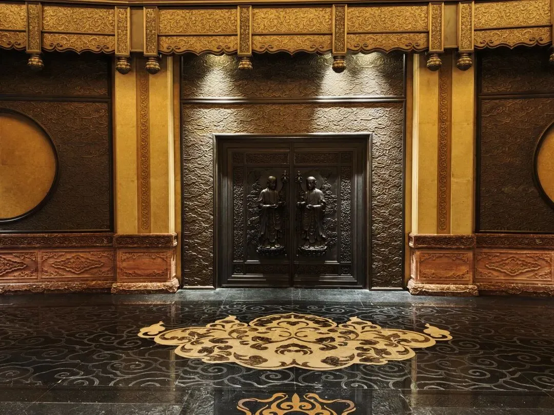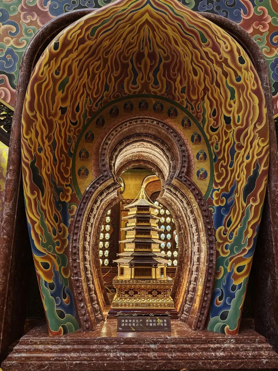 来到位于地下最深处的千佛殿,进入大厅,立刻被金碧辉煌,奢华至极的场面所震慑,仿若一步跨入了一座艺术殿堂中。眼前的一切实在是美的不可方物,眼花缭乱,一时竟不知先从哪看起才好。所有的空间都布满着各种艺术形式的佛教元素。这里是色彩的海洋,这里是艺术的圣殿。