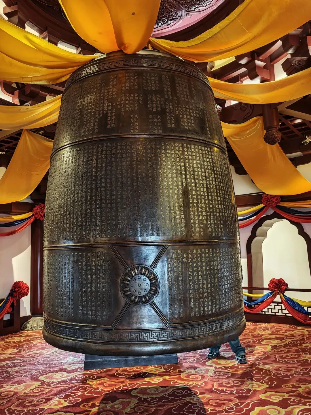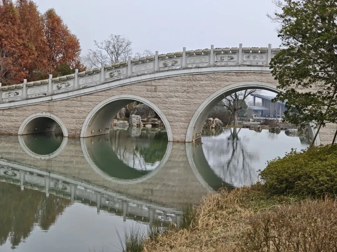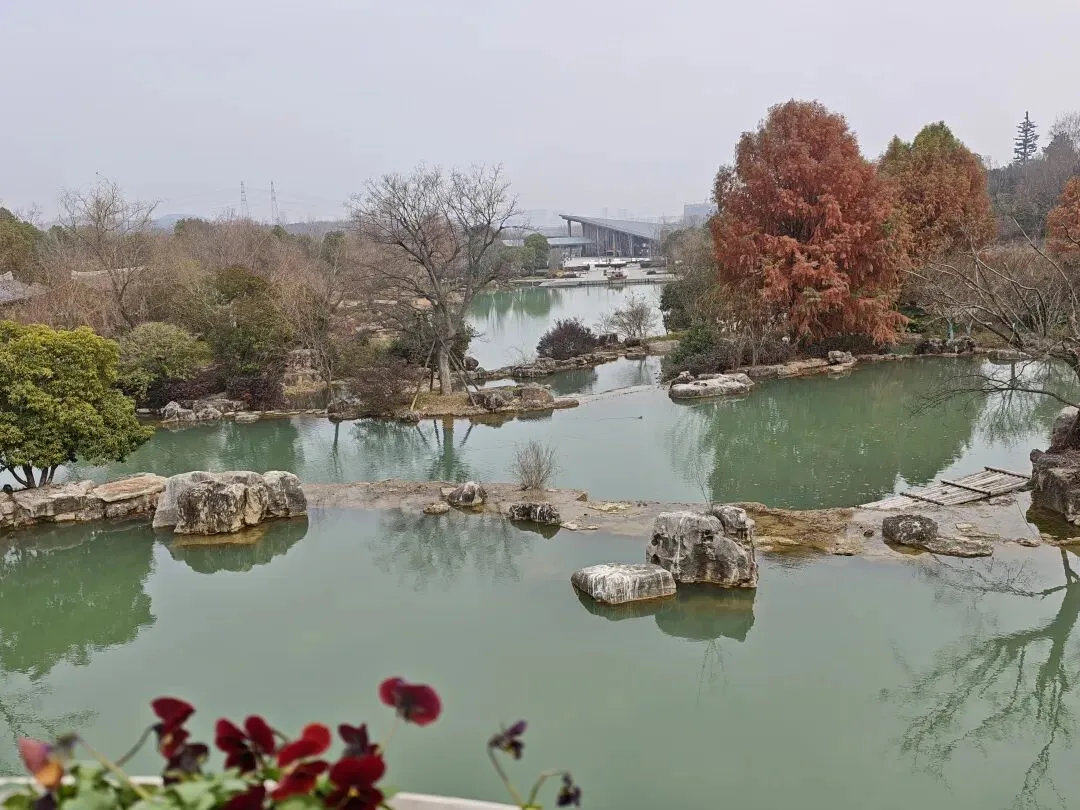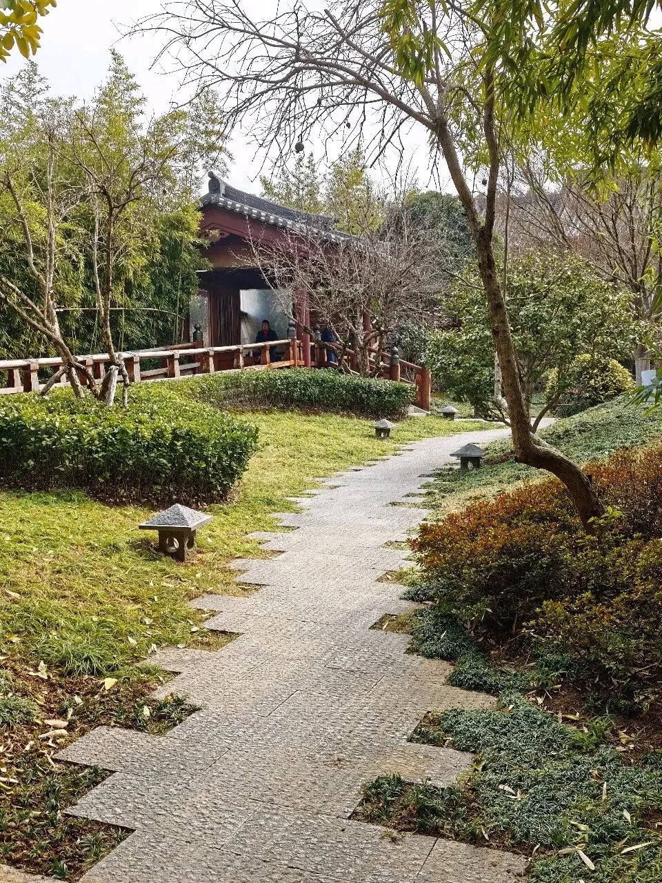 寺院依山而建,庄严恢宏。是前往佛顶宫朝圣礼佛的必经之路。在护送佛顶骨舍利安放时,佛顶寺是众僧安歇的地方。走入佛顶寺,一是欣赏唐风建筑、二是朝拜佛陀。院中的建筑既宏伟又带着江南的灵气,走一圈,既是欣赏建筑艺术,也可安抚浮躁的心灵。渐往东门方向的“佛顶前苑”。有了水色的出现。这条水域是一条泄洪渠改造而成。这也是从庄严肃穆的朝圣礼佛之路,转到了融入了经典江南园林的画面中。先经过法融广场。回看走过的山,走过的建筑-佛顶塔、佛顶寺。前可观牛首山东门建筑,后可望一路走来的牛首山自然与人文景致。如果从东门徒步上山,这一条路也有一个很禅意的名字“东禅心旅”。在佛顶前苑回看牛首山山林画卷,近处有亭台楼榭,假山泉池,石桥流水,矮墙漏窗、奇花异草合为胜景。远处的山、寺、林更是这画面的点睛底色。南京2日,南京博物院-老门东-中华门-明城墙-夜游秦淮河-晨色中的夫子庙秦淮河-瞻园-牛首山。
