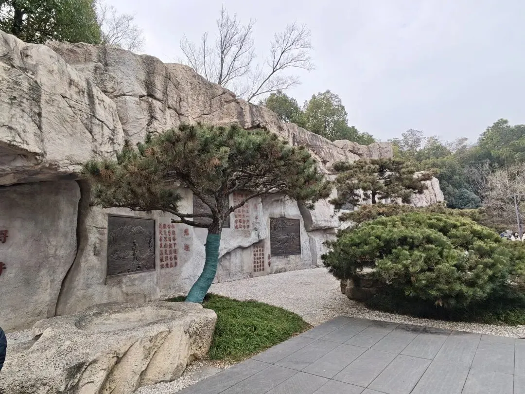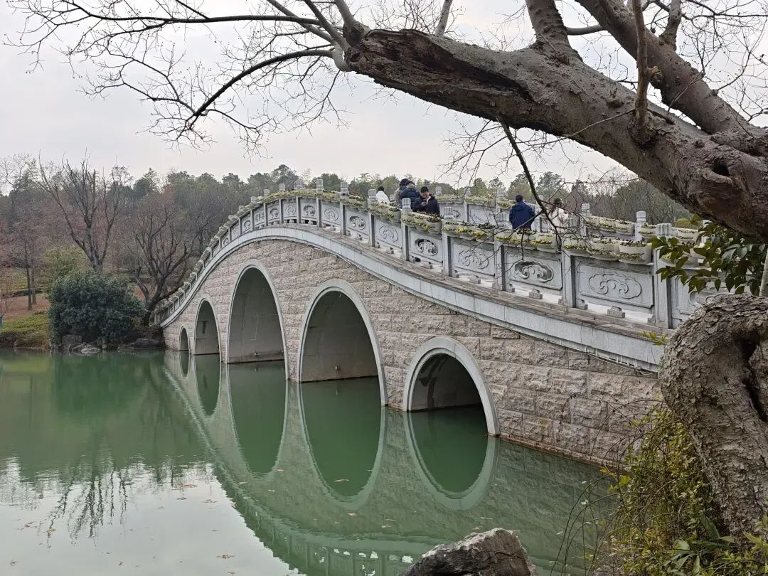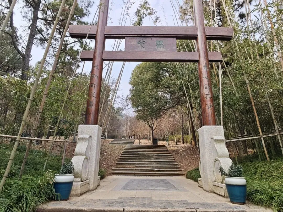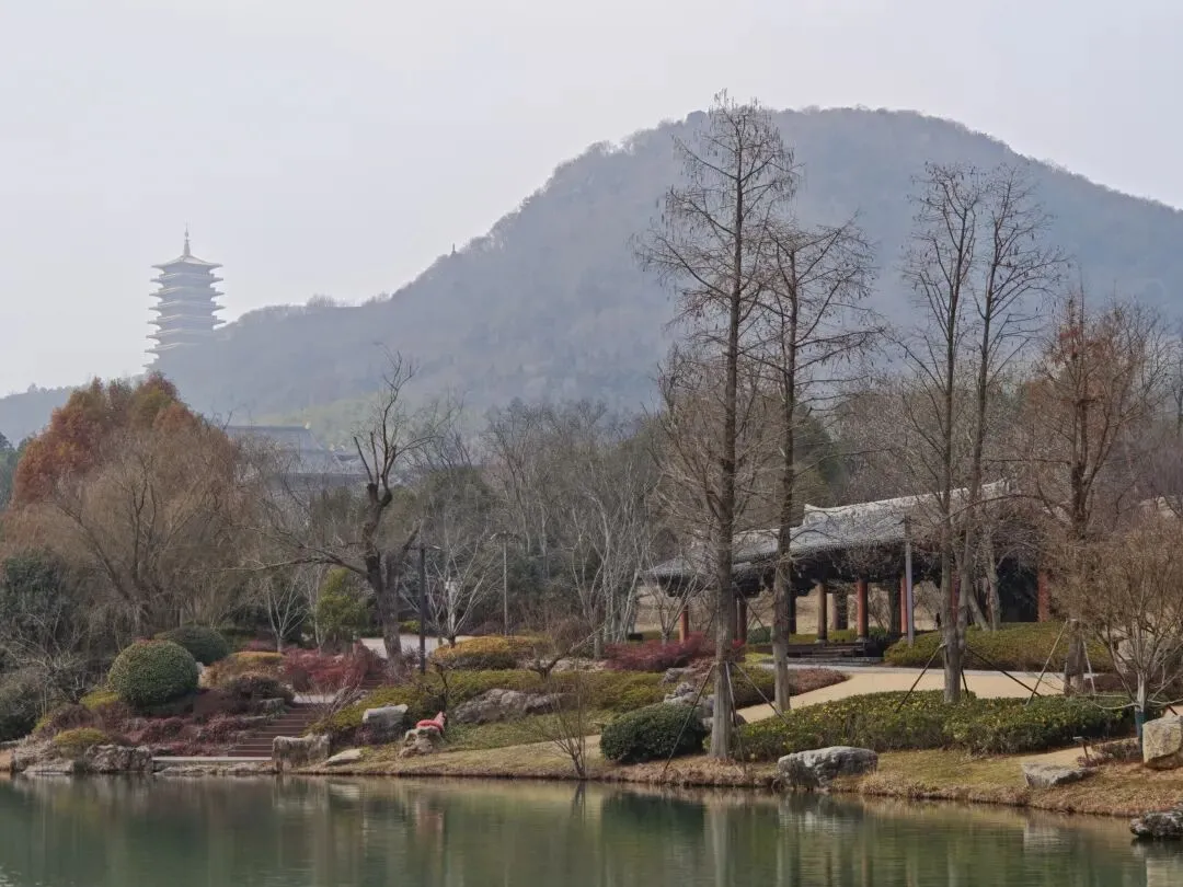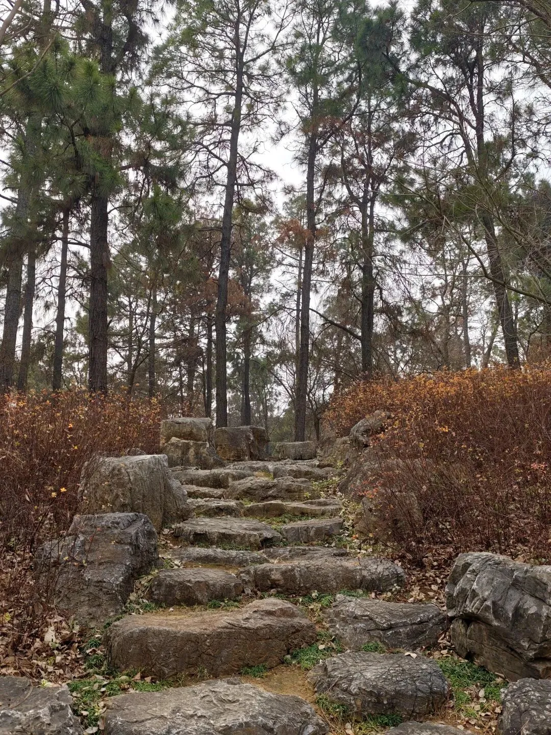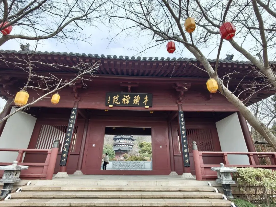 现在的瞻园一方面以文物为媒介能更深入的了解太平天国这一段历史,另一方面,这里也是江南园林的一个典范,历史悠久,浸润了太多名人名家的底蕴,自然景观也是非常吸引人的。走在园林区域,布局精巧,山水相融,拥有亭台、廊榭、假山、池水等元素,体现了“小中见大”的江南造园艺术。如果就植物的繁茂与色彩的精彩度,冬季并不是瞻园最美丽的季节。但于我这从北方过来的人来说,和济南相比,这里的植物的绿色也已经算是挺多的了。暖洋洋的太阳斜射下来,天气也不冷不热,在冬日里还能有这一份的绿色,在其中走一走很是舒爽。萌生出,以后冬季可以多往南方城市走一走的想法。从瞻园另一个门出。前往牛首山。有些赶行程,瞻园也是匆匆走过,挺好的一个园子,冬日的早晨,人也不多,园林景致和历史人文都值得来过。到达牛首山东门,牛首山离市区稍远些,打出租车很方便,即使离开时叫网约车也很方便。为节约一点时间和体力,我们上山乘坐的景交车,如果时间充裕也可以从西门进,这样可以经过郑和文化园和郑和湖。景交车直送到天阙站。这时也几乎到达山顶,接下来的一小段爬山竟然有电梯。其实牛首山是由牛首山、祖堂山等多座山峰组成。牛首山的最高峰是海拔242米的祖堂山主峰。今天在牛首山的行程:最先前往牛首山最重要和最有名气的佛顶宫、佛顶塔,然后前往紧邻的牛头禅文化园、弘觉寺塔,徒步下山,途经朝天阙牌坊、明代摩崖石刻、岳飞抗金故垒、佛顶寺、雪梅岭、佛顶前苑。