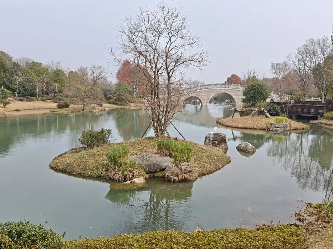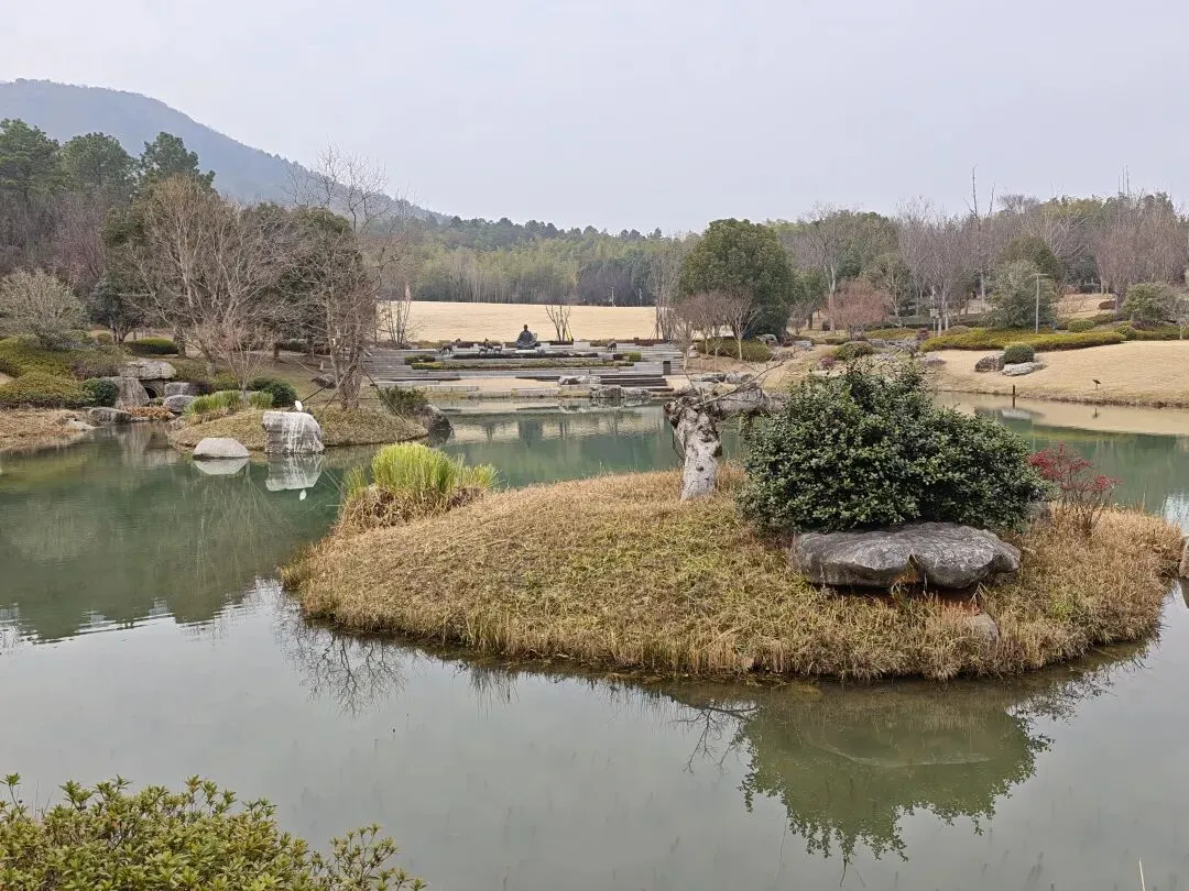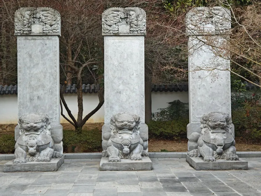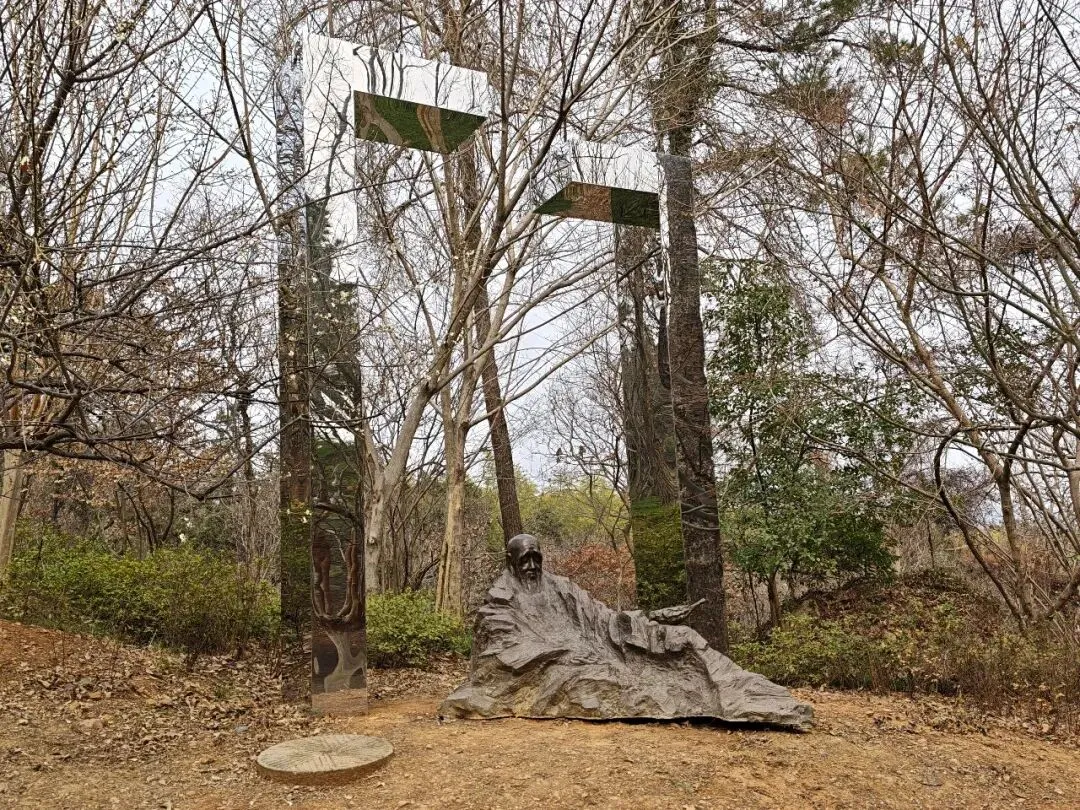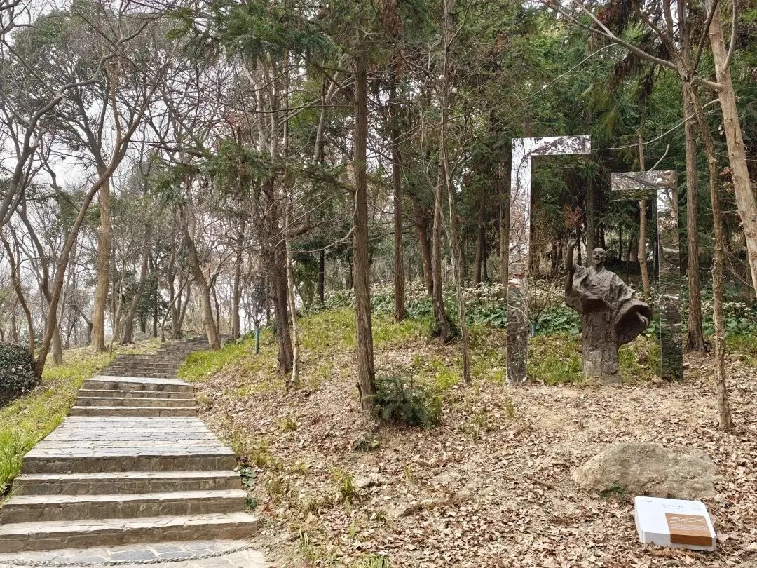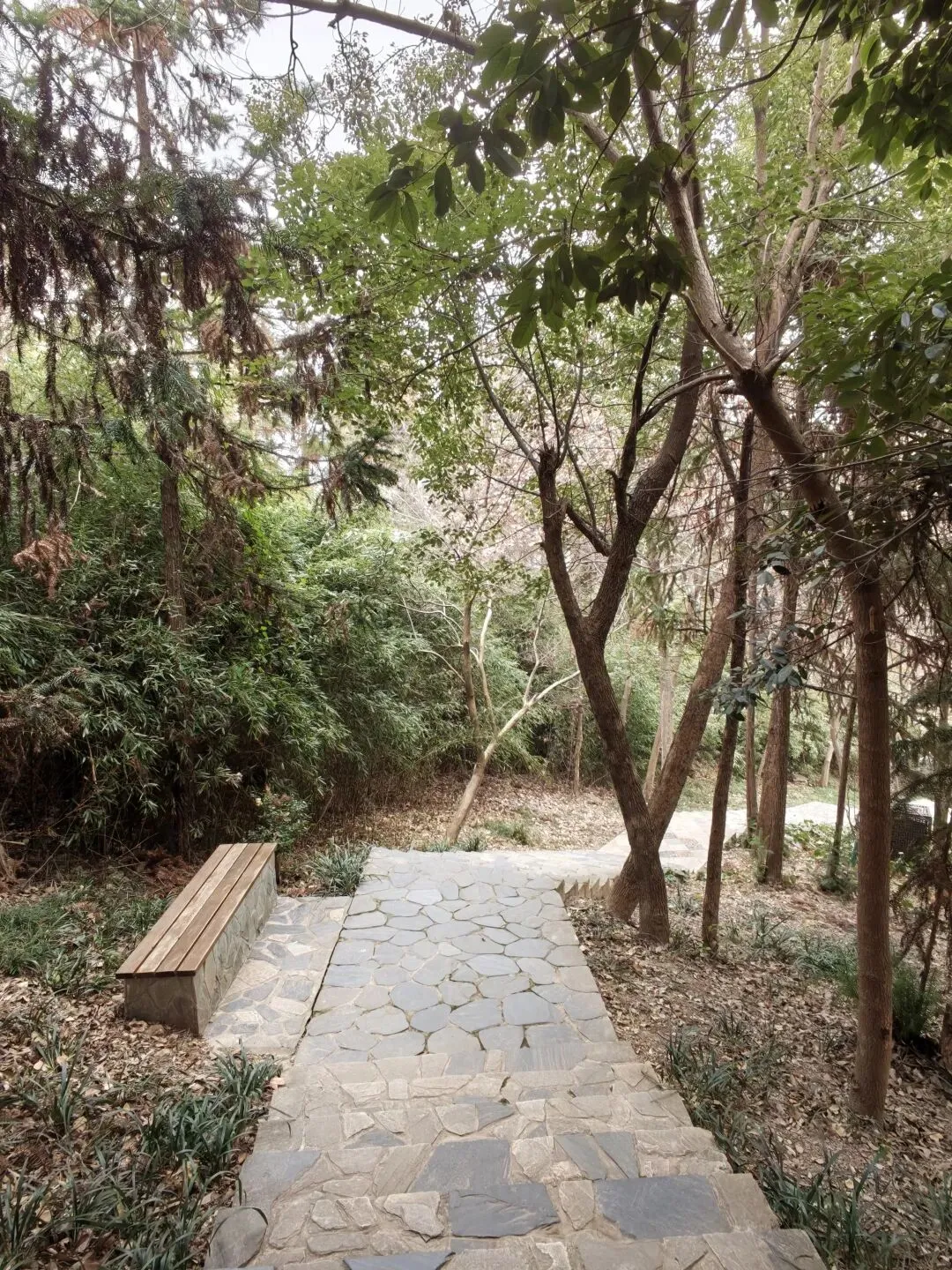 现在的瞻园一方面以文物为媒介能更深入的了解太平天国这一段历史,另一方面,这里也是江南园林的一个典范,历史悠久,浸润了太多名人名家的底蕴,自然景观也是非常吸引人的。走在园林区域,布局精巧,山水相融,拥有亭台、廊榭、假山、池水等元素,体现了“小中见大”的江南造园艺术。如果就植物的繁茂与色彩的精彩度,冬季并不是瞻园最美丽的季节。但于我这从北方过来的人来说,和济南相比,这里的植物的绿色也已经算是挺多的了。暖洋洋的太阳斜射下来,天气也不冷不热,在冬日里还能有这一份的绿色,在其中走一走很是舒爽。萌生出,以后冬季可以多往南方城市走一走的想法。从瞻园另一个门出。前往牛首山。有些赶行程,瞻园也是匆匆走过,挺好的一个园子,冬日的早晨,人也不多,园林景致和历史人文都值得来过。到达牛首山东门,牛首山离市区稍远些,打出租车很方便,即使离开时叫网约车也很方便。为节约一点时间和体力,我们上山乘坐的景交车,如果时间充裕也可以从西门进,这样可以经过郑和文化园和郑和湖。景交车直送到天阙站。这时也几乎到达山顶,接下来的一小段爬山竟然有电梯。其实牛首山是由牛首山、祖堂山等多座山峰组成。牛首山的最高峰是海拔242米的祖堂山主峰。今天在牛首山的行程:最先前往牛首山最重要和最有名气的佛顶宫、佛顶塔,然后前往紧邻的牛头禅文化园、弘觉寺塔,徒步下山,途经朝天阙牌坊、明代摩崖石刻、岳飞抗金故垒、佛顶寺、雪梅岭、佛顶前苑。