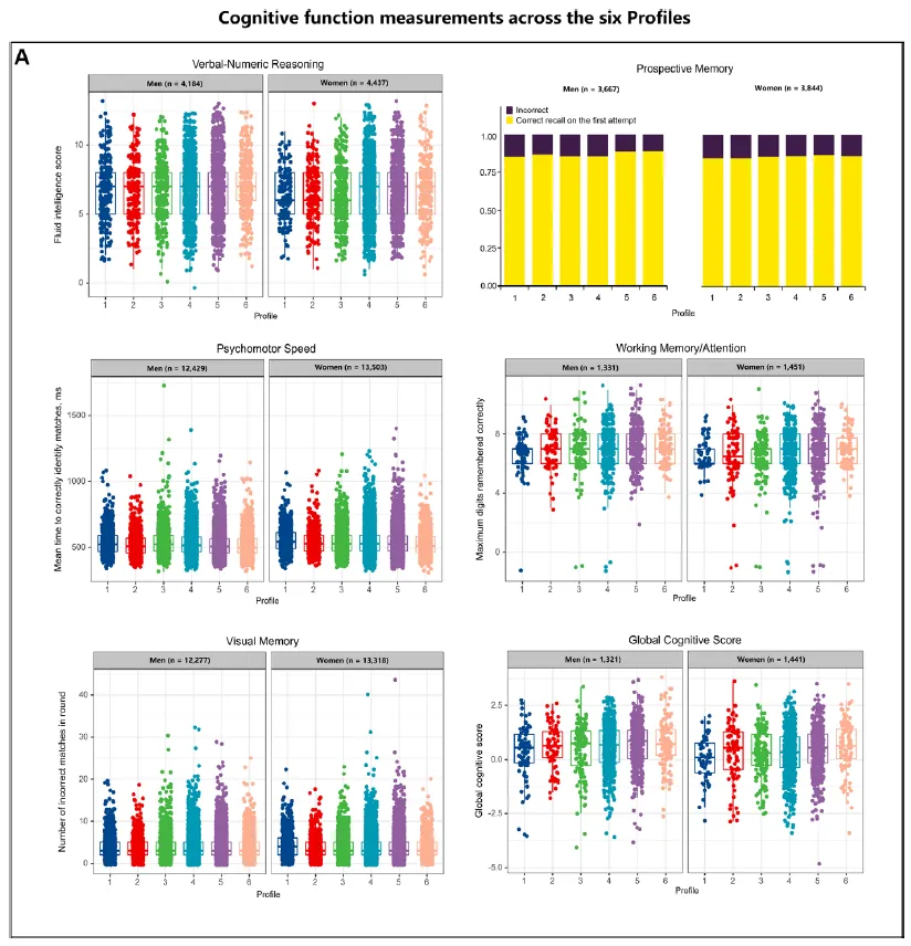 - 前瞻记忆:男性Profile 1-3风险升高(OR=0.69-0.75)。