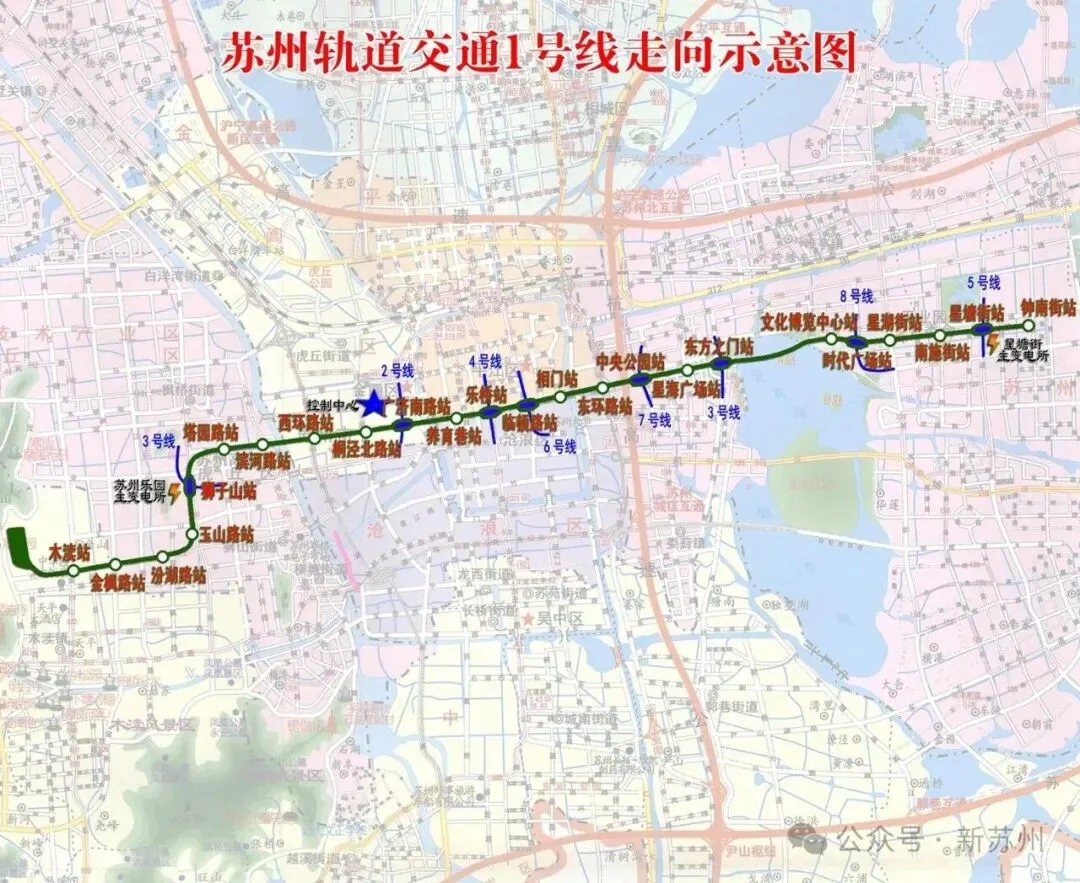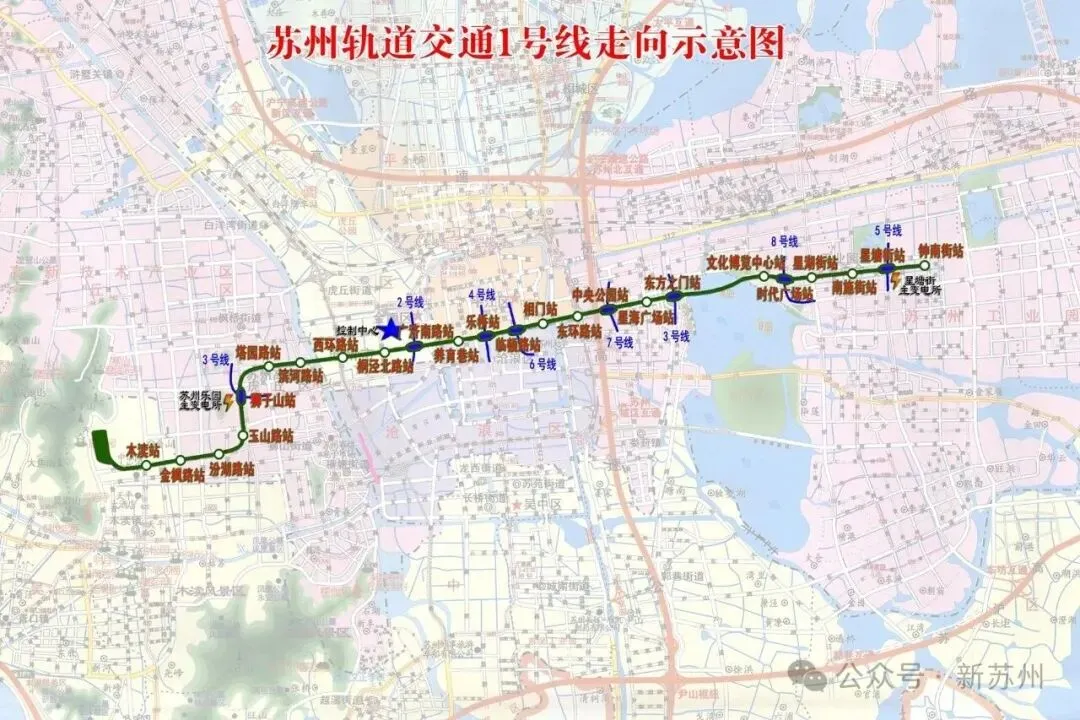 苏州地铁1号线线路图!Suzhou Metro Line 1