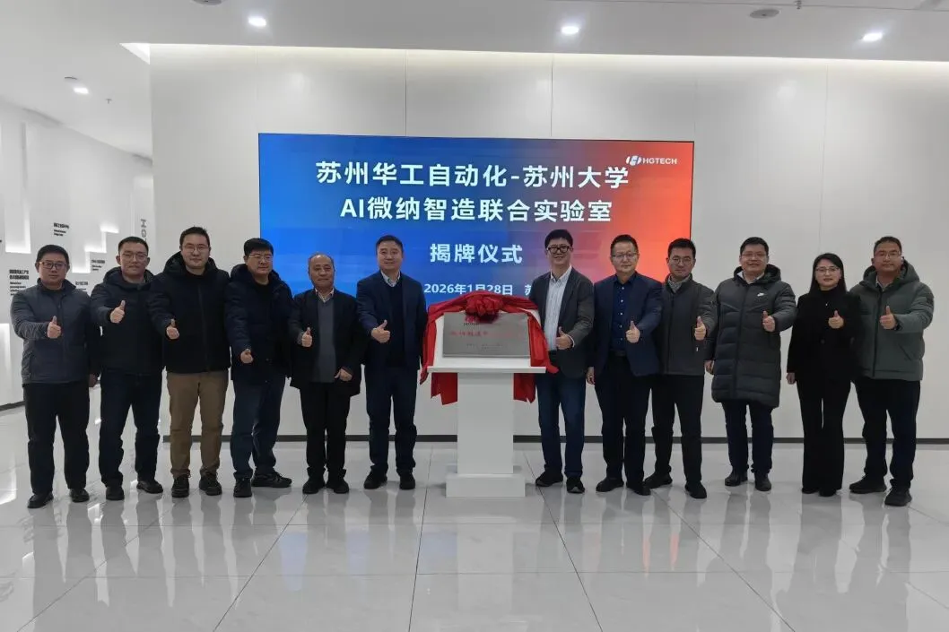 1月28日,由华工激光子公司苏州华工自动化科技有限公司(以下简称“苏州华工自动化”)与苏州大学先进制造技术研究院联合打造的“AI微纳智造联合实验室”正式签约并揭牌。仪式在华工科技智能制造华东总部基地举行,标志着双方从战略合作迈向“技术研发-产业应用”全链条协同创新的新阶段。